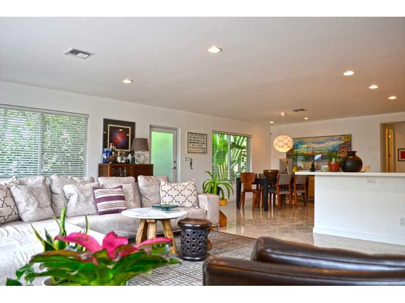 WOW, Completely remodeled waterfront home in sought after Dolphin Isles- Polished Terrazzo floors- impact windows/doors- new high end kitchen new a/c, new electric, new spa like baths. New dock, seawall cap and batter pilings 2012- beautiful view of the I ntracoastal from the large dock-40 ft of water plus a piling set out to accommodate a larger vessel. Your own private Tropical retreat. Walk to the beach, dining & shopping. This large corner lot could also be used for townhomes, a larger home, small bldg