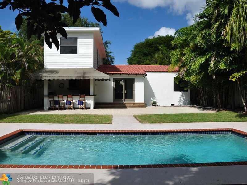 Location Location Location the heart of The East Las Olas neighborhood of Colee Hammock! Great Cathedral ceilings, built-ins, hardwood floors and a wood burning fireplace. Spacious eat-in kitchen has newer cabinets and stainless appliances. Den/Front Hall area has built-ins, extra storage and laundry closet. Over sized 135' x 50' lot is completely fenced with pool, covered patio and built-in bar and grill perfect for entertaining. Motor court entry and open porch.