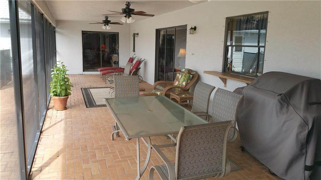 Spacious 4 bedroom, 3 bath home on .42 acre lot on C-14 canal and directly adjacent to community park with playground and walking trail. In-ground pool with spa and huge screened patio. Circular driveway & oversized 2 car garage. Custom rough cedar trim throughout & cedar built-ins around brick fireplace. Vaulted ceilings in living and family rooms. Lots of natural light. Master bath w/ huge marble roman tub. Ceiling fans throughout. Full hurricane shutters.