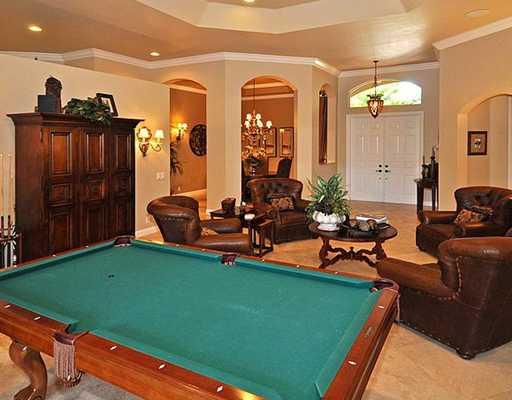 Over 4400' sq. of luxurious living area, w. 5BR/4.5 BA + Den & Loft. 24" Saturnia marble in the living areas. Gourmet kitchen w. granite counters, tumbled marble backsplash, 42" wood cabinets, double oven, stainless steel appliances. MBR w. 2 customized walk-in closets. Real hardwood floors in bedrooms & Den. Elegant built-in entertainment unit in Family Room. Lushly landscaped & private yard. Huge free-form heated pool & spa, Chicago brick paver patio & built-in Summer Kitchen w. sink & refrigerator.