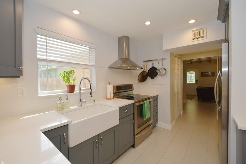 Renovated & ready to move in to home in Shady Banks! 3 bed 2 baths, beautiful remodeled kitchen w/ stainless high end appliances, quarts counters. Porcelain tile floors, impact windows /doors, vaulted ceilings, fireplace. Large master bedroom w/ walk in closet. Big deck area off kitchen, perfect for entertaining. Large gated carport for covered parking, extra storage. Open front porch, tropical landscaping front & back. Neighborhood has 2 parks & is located minutes to downtown, airport, beach. A must see!