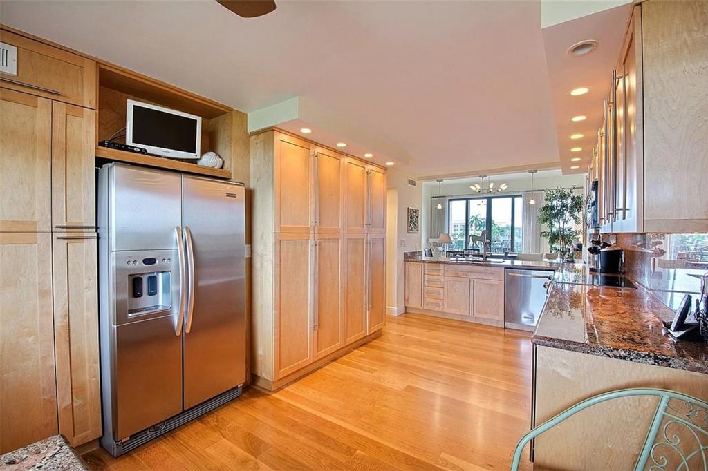 Updated contemporary Penthouse, dockage included, volume ceilings, floor to ceiling impact windows & doors & waterway views over Lake Mayan. The large eat-in kitchen is ideal for entertaining with tremendous storage. 2 Open balconies face the waterway & enjoy tropical breezes from the east. Rich wood flooring & a sleek modern railing afford access to the ensuite bedrooms. The large master suite offers a walk-in closet & lavish bathrm. Walking distance to the beach. Sq ft from BCPA believed accurate.
