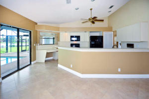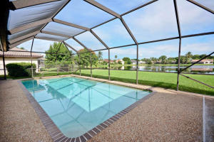 Double door entry opens to an elegant living room with panoramic Lakeviews. Features include a 4BR/3BA split bedroom plan, with large Master Bedroom Suite with new carpet, walk in closet, and jacuzzi style tub in bath, all overlooking lake! Dome sreened Pool with lake views! Stunning 24'' X 24'' rectified tile set at a diagonal. An oversized 2 car garage with storage cabinets. Lakefront diamond brite, screened pool with a covered patio. New S-Tile Roof in 2001. A/C and hot water heater new in 2014. Separate A/C Laundry room. Top rated Schools and low HOA fees. Just a short distance to Shopping, Dining, Golf, Hospitals, and Houses of Worship. Huge easement on one side of home!