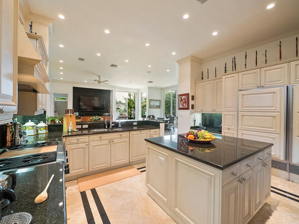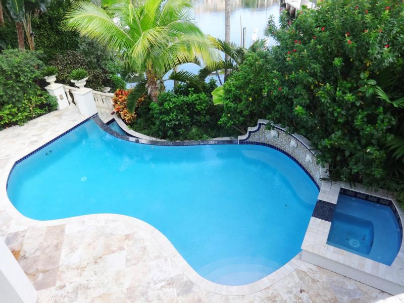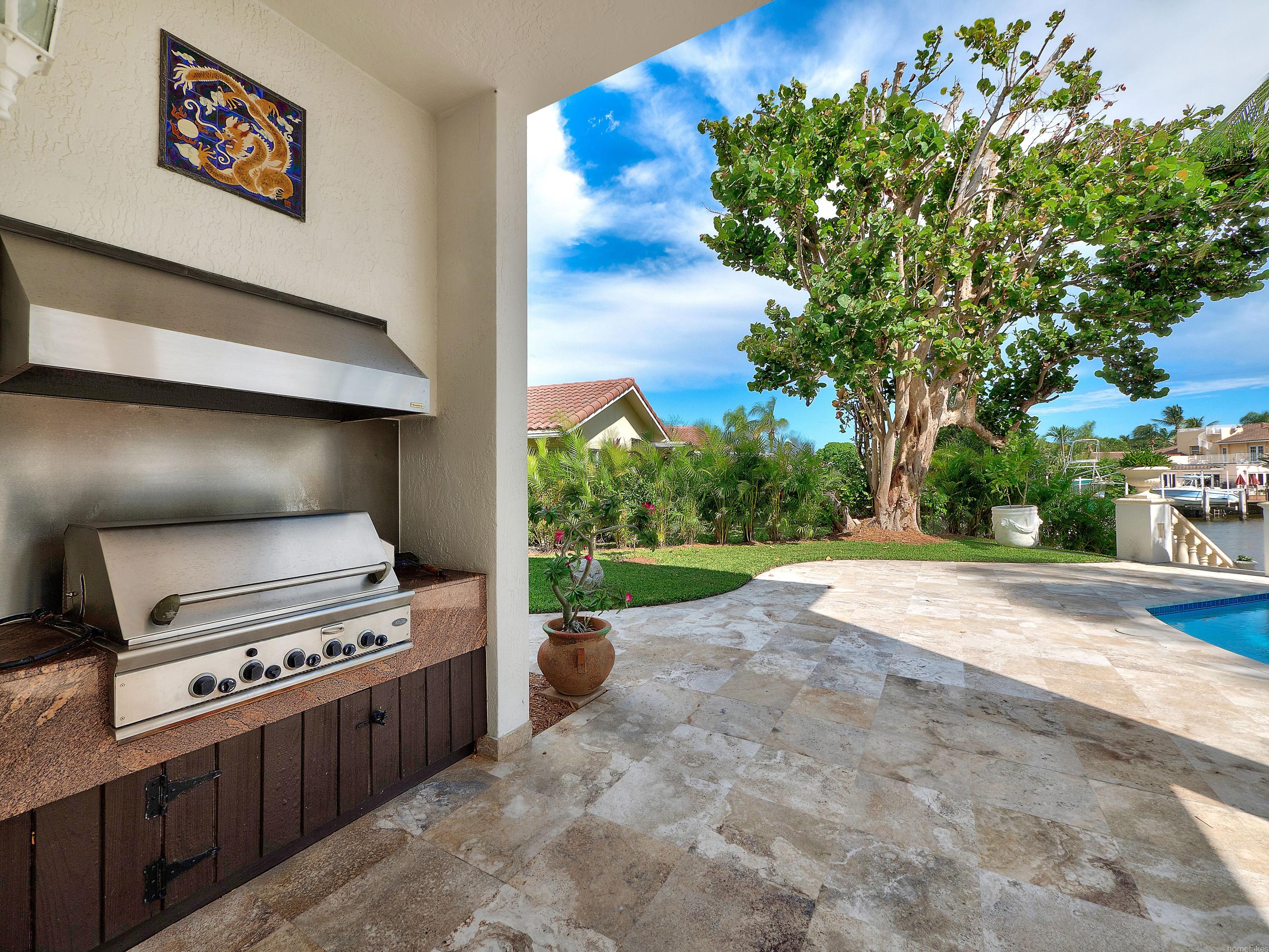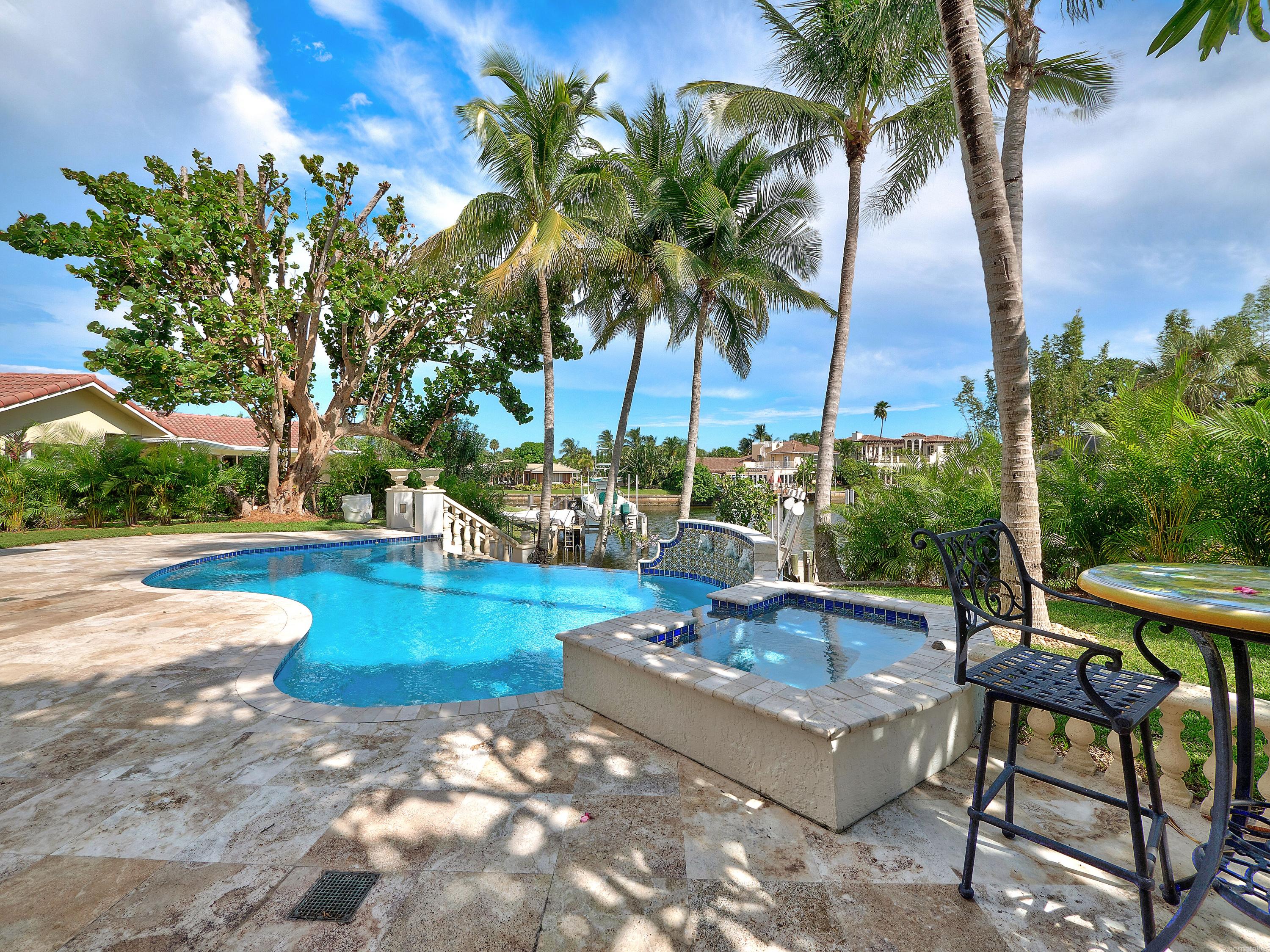 WOW! Paradise found! If you are looking for a truly exceptional custom built waterfront home - in immaculate condition - then this is your ''paradise''. Bring your boat! There is a private deep water dock AND a boat lift! A 30-foot boat may be docked - and the lift holds up to a 10,000 pound watercraft! There are NO fixed bridges! The resort-style free-form infinity-edge heated pool has been recently diamond brited. Dine al fresco - all the time - under the large covered patio. There is a summer kitchen too! This exceptional home is entered via a gated garden courtyard. Upon entering one is flooded with an abundance of natural light - due to the double height living room - and numerous floor to ceiling window walls! The gourmet kitchen features a separate Sub Zero refrigerator and freezer