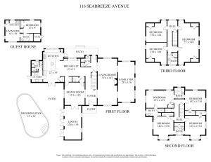 First time on the market in over 25 years! Beach house - sunny and bright.Ocean Block - 2nd house off the ocean; South side of Seabreeze Avenue.7BR/6BA, family room, chef's kitchen, beautiful pool & cabana.