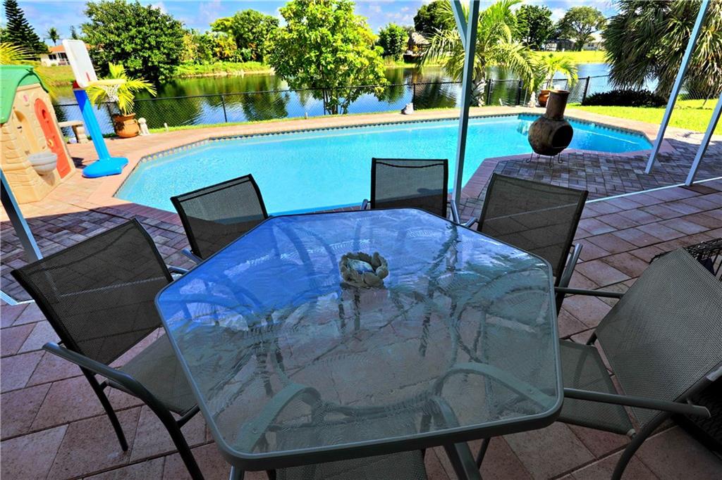 Sit in you big patio and enjoy the excellent water view!!! Newer salt water pool!! Fenced back yard. Home has tile throughout entire home. Spacious living room. Oversize garage 500 sq ft appx. Newer impact garage door, House has shutters and some impact windows. Seller gets credit on insurance for shutters. Brand new central a/c. Lot of care given to this home. Great house in ready to move in conditions. Enough room in yard for a large swing set. Good schools. A must see!!