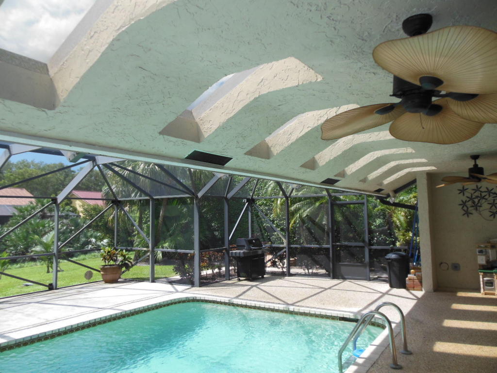 Extraordinary Tuscan Harvey custom built open design. Stunning vaulted cedar ceiling filled with skylights and high hat lighting through out. From the moment you enter this light, bright one of a kind contemporary one story you will feel the comfort of true Florida living. Nestled on private interior canal lot in one of central Boca's prime family oriented communities. Impact glass windows and doors through-out interior of home. Upgraded formal & high hat lighting, laminate wood flooring in oversized twin bedrooms, cook-top & dishwasher. Lush landscaping added around entire home. Special features include oversized bedrooms and ample closetry. Large covered/screened pool area, great for entertaining & play. Walk to Boca Tierra Park and top A+ Schools. See supplement for more detail