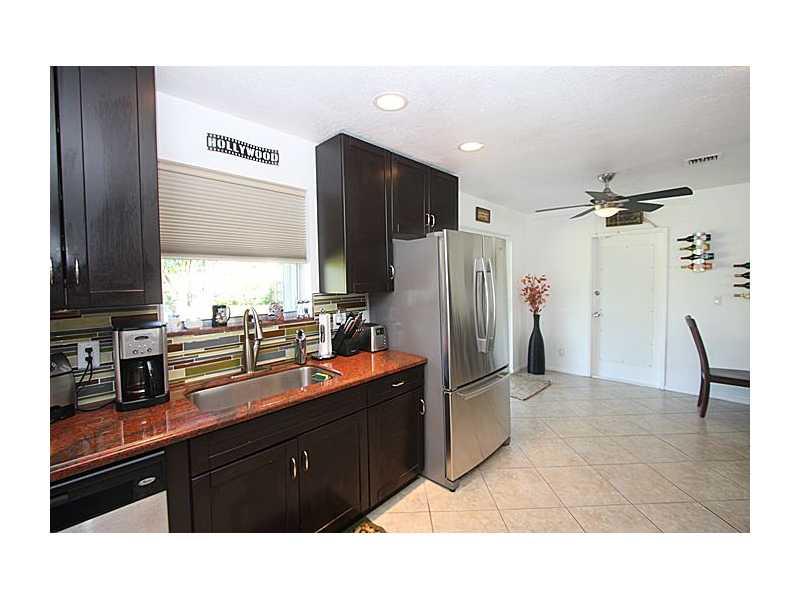 3rd bedroom is open & makes a big living room so now it is a 2 bedroom. This is a perfect house New Top of the line appliances, New A/C, Tiled Thru-out, incredible Granite counters with open kitchen, eat up bar. Everything is new A/C, tank less hot wate r heater, Front loading Washer and dryer, accordion shutters The owner likes to call the yard a park as the lot seems to be a double lot and has a beautiful sliding glass door to a great covered patio. Room for a 2nd bath.