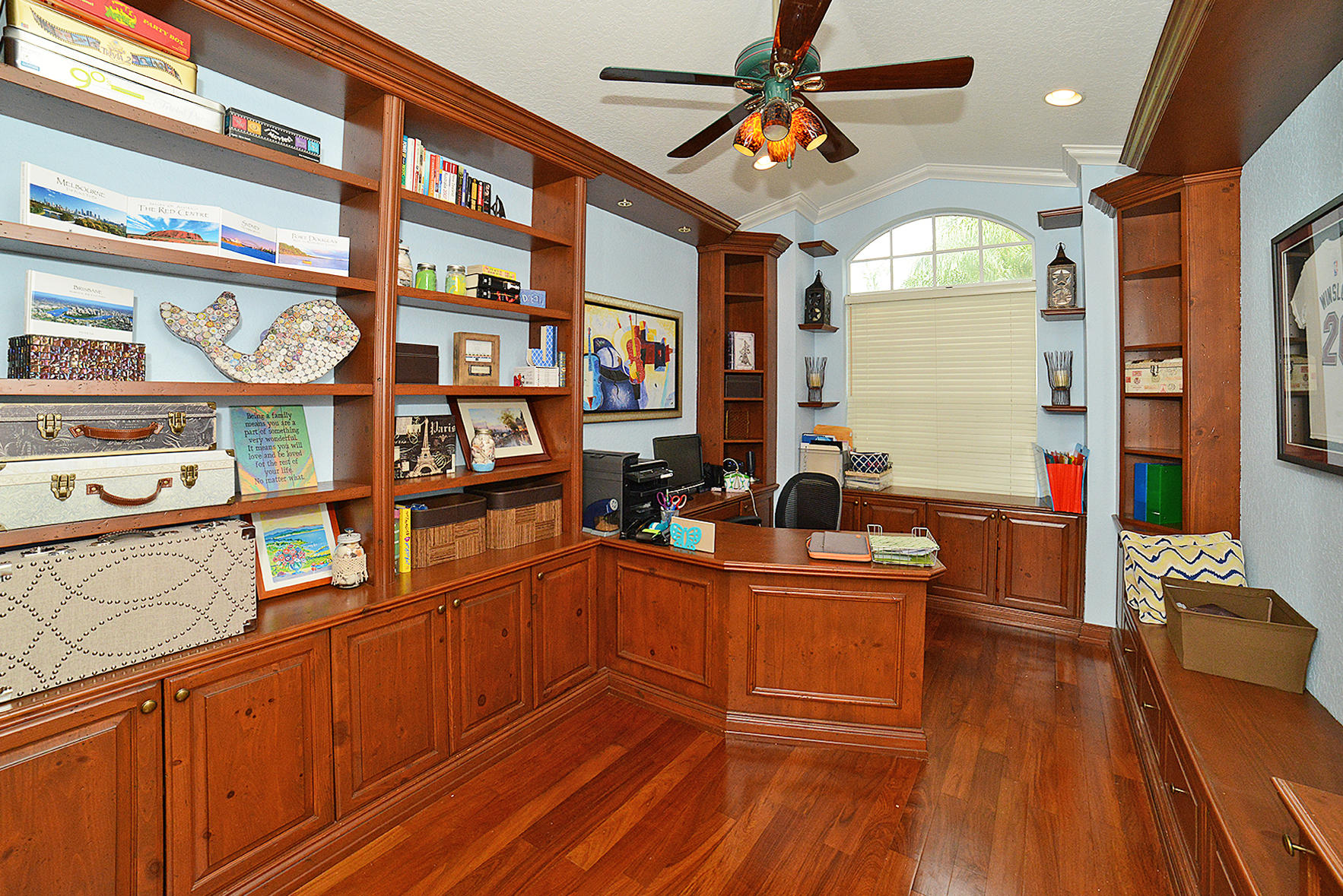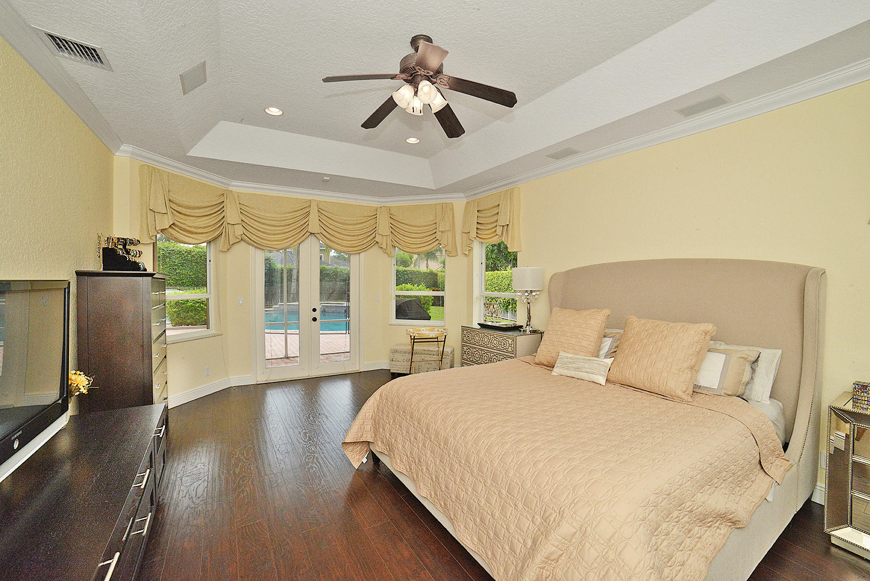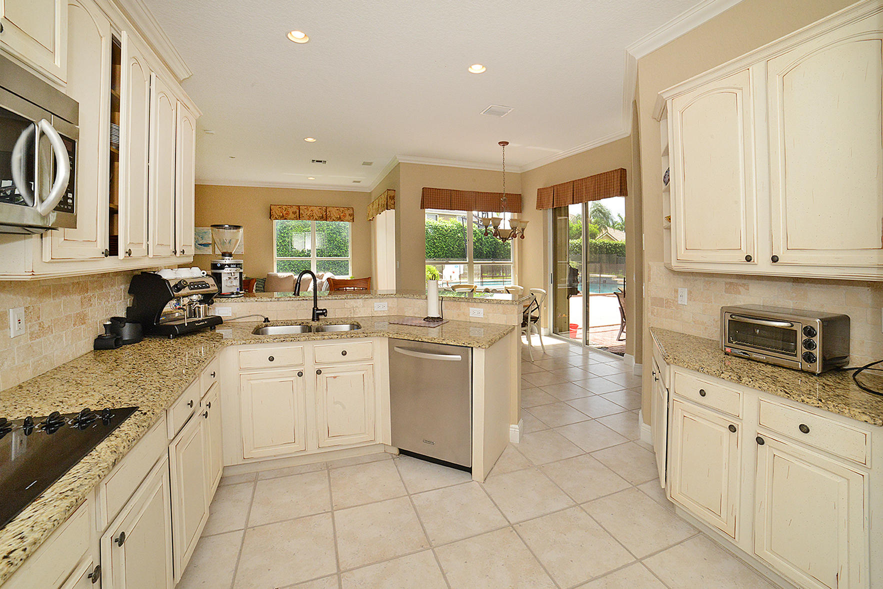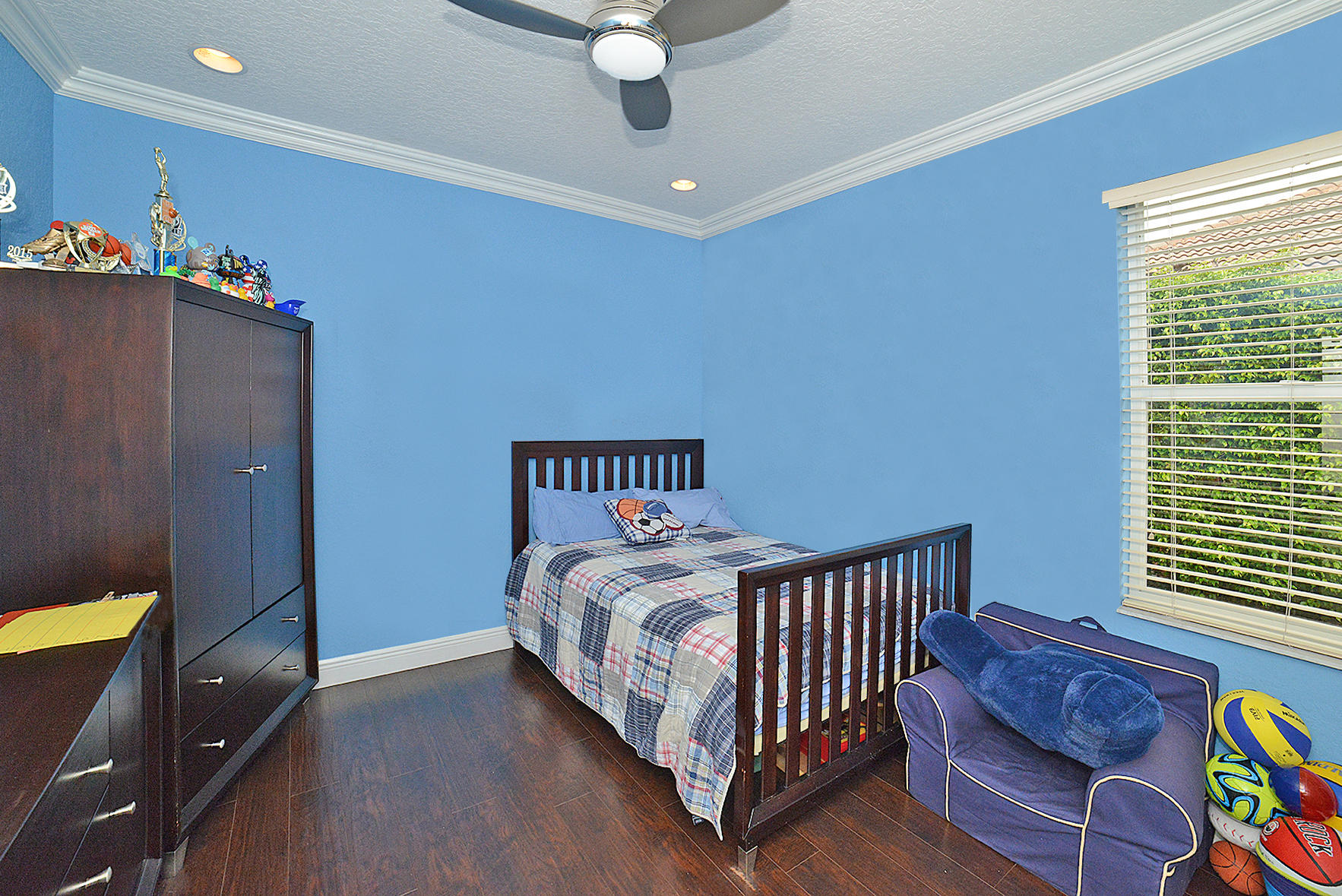 Fabulous open, light and bright pool home in incredible Boca Falls!! Updated kitchen, baths, floors, crown molding. 4th bedroom used as an office with built-in shelving. Accordion shutters. Huge 1/3 acre interior lot with beautiful pool! Lots of room for the kids to play. This home is in a terrific neighborhood with wonderful amenities and A rated schools nearby. Not to be missed!