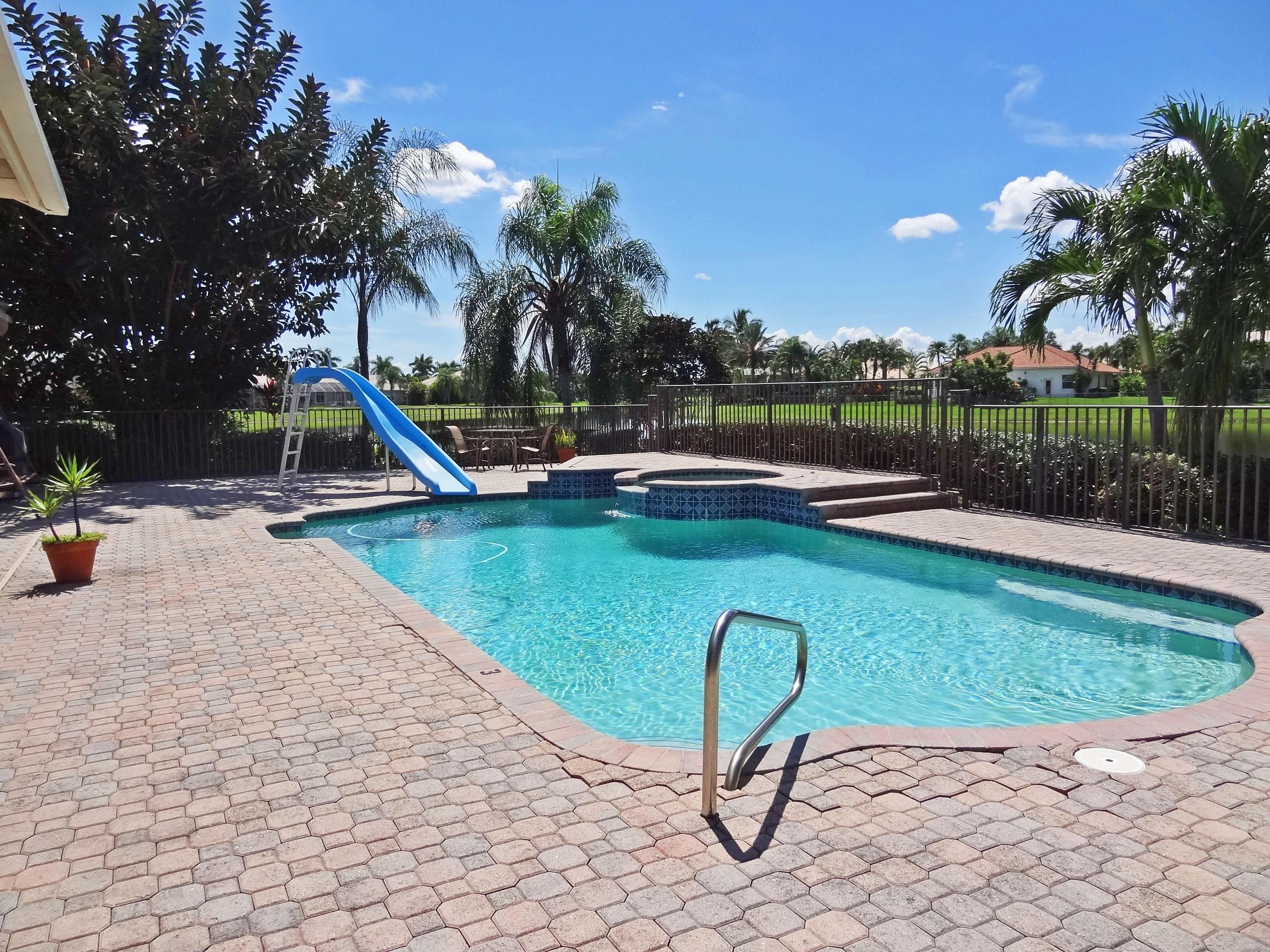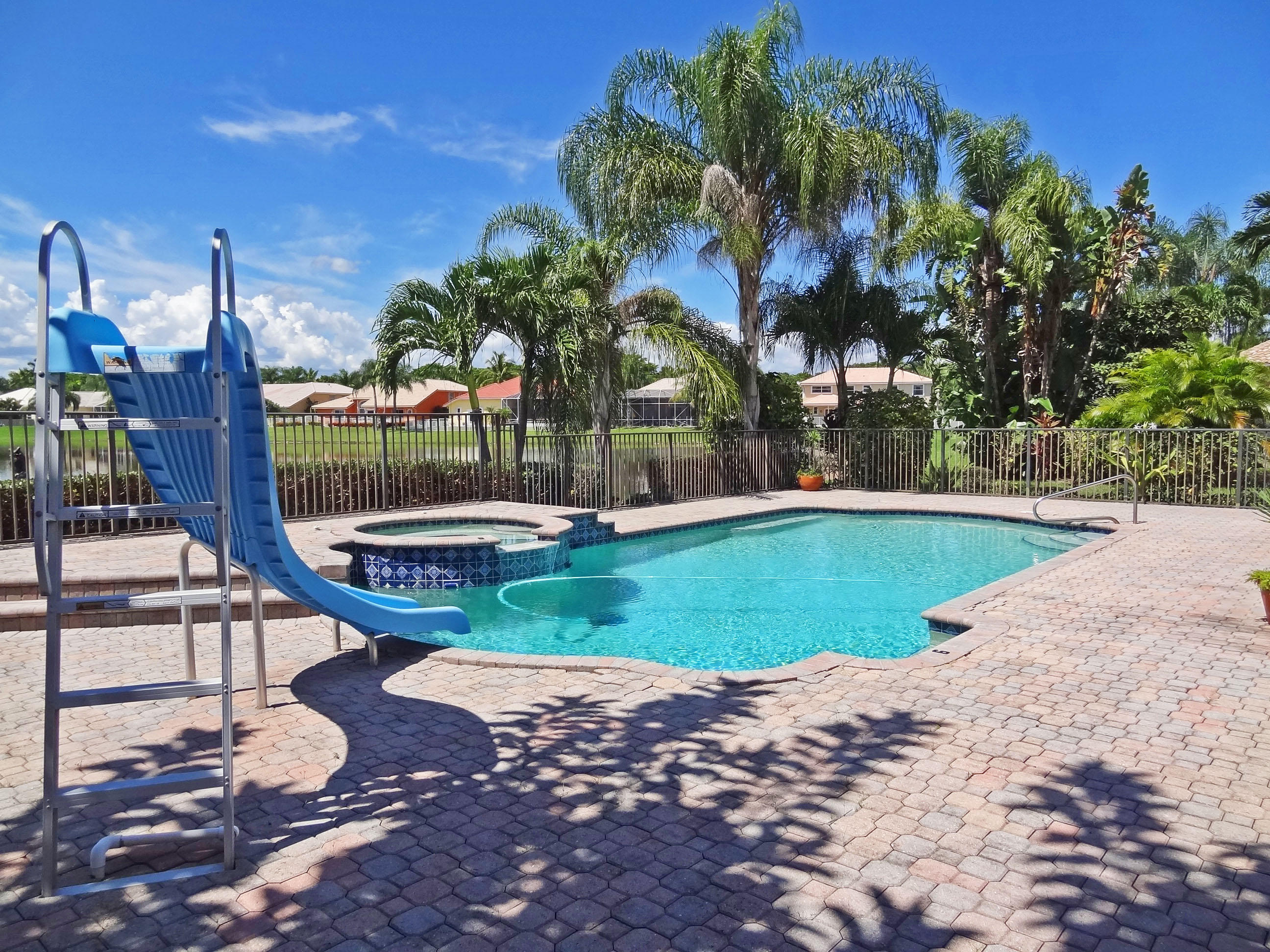 BOCA FALLS BEST LAKEFRONT LOCATION,ALMOST 1/3 ACRE LOT WITH 120' OF LAKE FRONTAGE,OVERSIZED FENCED & HEATED POOL W/RAISED SPA, WATERFALL & SLIDE,IMMACULATE 5BR 4.5BA,+3CG CAPTIVA MODEL,MASTER BEDROOM + OFFICE/CONVERTIBLE BEDROOM DOWN,3 BEDROOMS + 2 BATHROOMS UP,FULL CABANA BATH,ACCORDION HURRICANE SHUTTERS,NEW STAINLESS STEEL KITCHEN APPLIANCES,CORIAN COUNTERS & WOOD CABINETS,TWO BRAND-NEW AC UNITS,ONE NEW WATER HTR,2ND WATER HEATER IN MASTER BEDRM,RECENTLY PAINTED INSIDE/OUT,NEW WASHER/DRYER,NEW CARPETS STAIRCASE,LOFT&BDRM #4,A GREAT HOME, BOCA FALLS A GATED COMMUNITY W/ NEWER FITNESS CENTER,JUST REMODELD CLUBHOUSE AND POOL AREA,6 TENNIS COURTS W/LEAGUE PLAY. COVERED CHILDREN'S PLAYGROUND. WALKING DISTANCE TO A RATED WATERS EDGE ELEMENTARY,HIGHLY RATED LOGGERS RUN MID & WEST BOCA HIGH