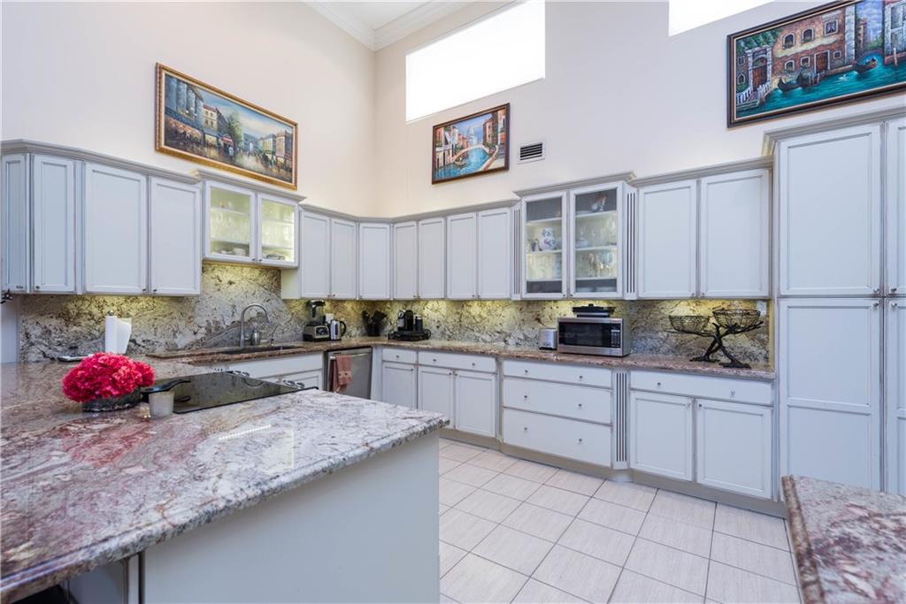 CORNER END UNIT for ultimate privacy! ALL GROUND FLOOR unit with 16-FOOT CEILINGS in highly desired CHATWICK model. SPACIOUS 4 BEDROOMS & 3 FULL BATHS with a DEN! CROWN MOLDING, 2 COMPLETELY RENOVATED bathrooms; EXPANSIVE screened in porch for year-round entertaining, FABULOUS KITCHEN completely redone - Kasmir granite, SS appliances, CUSTOM SOLID WOOD CABINETS! CUSTOM WATER PURIFICATION system for entire house! Non-mandatory Boca Pointe membership - gated community - a must see!