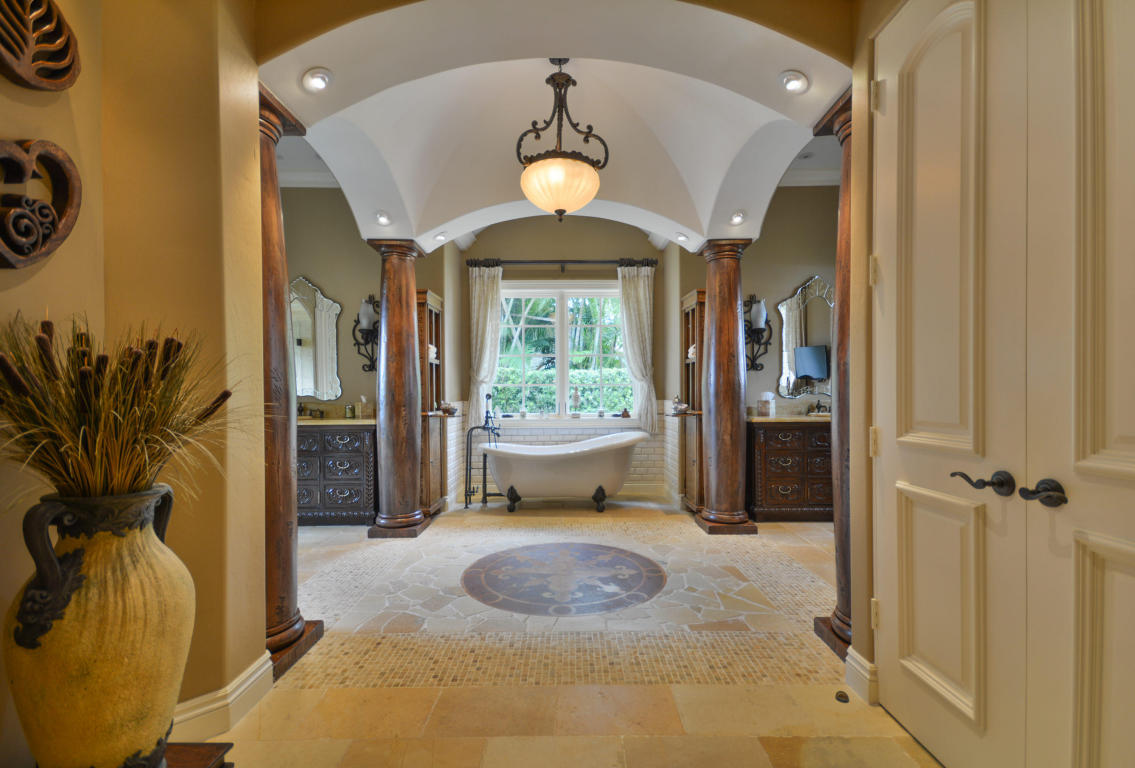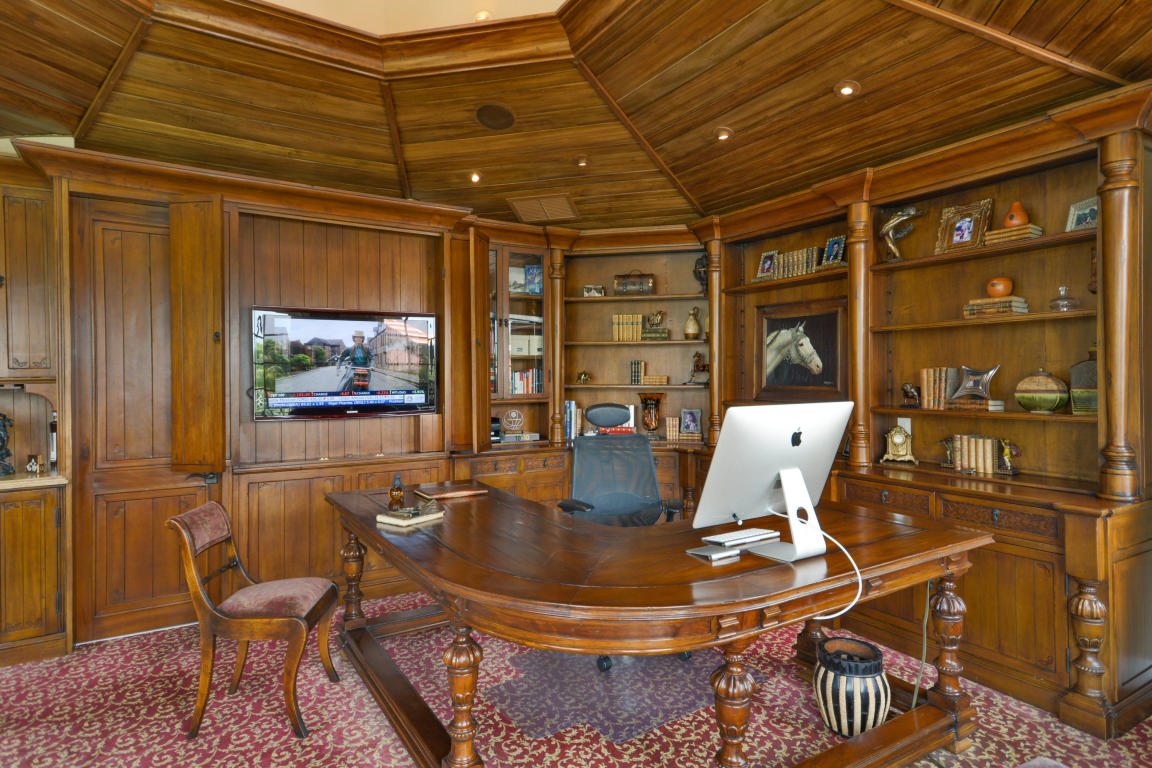 Absolutely spectacular 5 bedroom, 4.1 bathroom waterfront home. No expense was spared in the finishes of this home, completely redone inside and out. All rooms located on the first floor except for the custom wood octagon shaped office and marble half bath. Gourmet chef's kitchen with all new Dacor Cooking Appliances; warming drawer, propane gas 6 burner stove with griddle, subzero side by side refrigerator; Raised Panel Kitchen Cabinet Doors; 2 large floating islands; Granite counter tops; and low voltage under counter lighting. The large master suite features wool pattern carpet, television sound system, extra-large walk in closet with custom maple cabinetry, and paneled wall with hidden door leading to 2nd floor office.