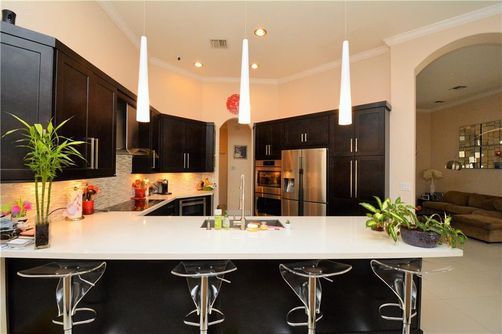 SPECTACULAR INSIDE AND OUT! COMPLETELY REMODELED KITCHEN WITH ITALIAN CABINETRY IN A MODERN STYLE, ALL NEW STAINLESS STEEL APPLIANCES, COMMERCIAL GRADE FAUCET AND NEW SINK, DECORATIVE GLASS BACKSPLASH AND GORGEOUS QUARTZ COUNTERTOPS. NEW PORCELAIN FLOORING THROUGHOUT COMMON AREAS AND MASTER. OTHER BEDROOMS HAVE WOOD FLOORING. HUGE YARD WITH OVERSIZED TRAVERTINE PATIO WITH POOL AND SCREENED ENCLOSURE.