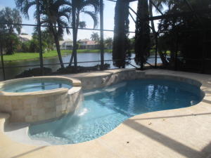 Spacious 4 bed 2 bath lakefront pool home featuring a circular paver driveway, fresh paint, an updated kitchen with granite counters and new stainless steel appliances, tile floors in the living areas, a built-in entertainment center in the family room, wood laminate flooring in the bedrooms, updated bathrooms, a full interior laundry room, and a screened pool and spa overlooking the lake. Boca Isles South is a 24 hour manned guard gated community with a clubhouse, Olympic size pool & Jacuzzi, tennis, a playground, a fitness center, basketball and billiards all conveniently located close to A rated schools, shopping, dining, and golf.