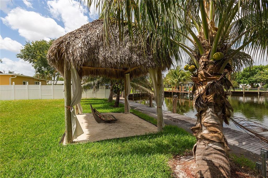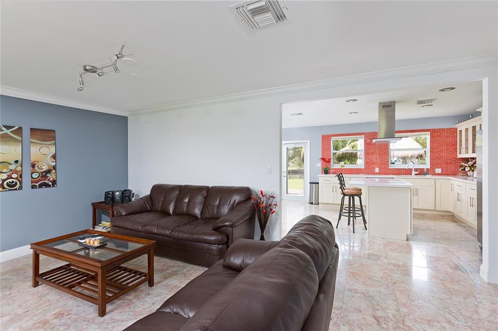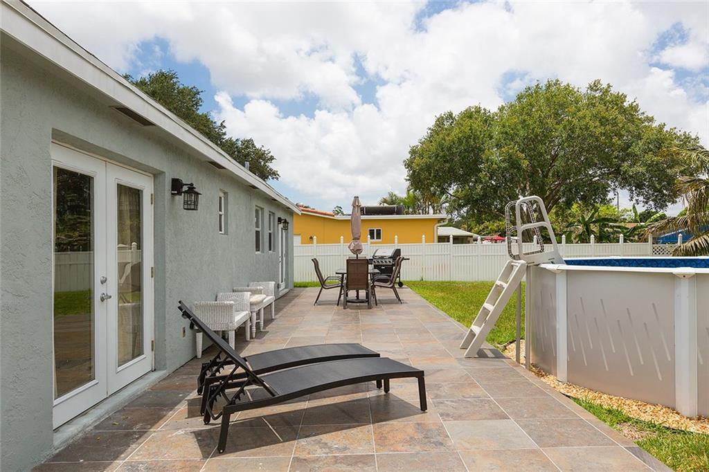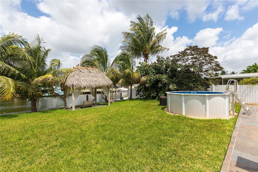 Gorgeous waterfront home totally renovated with dockage and ocean access. This cul-de-sac house comes furnished with 3 large bedrooms 2 beautiful bathrooms. A large opened kitchen with stainless steel appliances, a cooking island and a beautiful view of a large canal. Marble floors and laminate woods in all the bedrooms. Fenced in tropical backyard with a heated above ground pool and a covered sand Tiki area. Comes with a 65 feet deep water dockage area. Near major highways, airport, beaches & marinas.