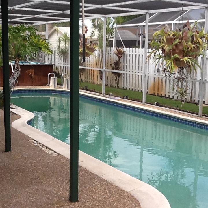 New kitchen cabinets, floors and appliances. Beautiful screened pool. Great neighborhood.