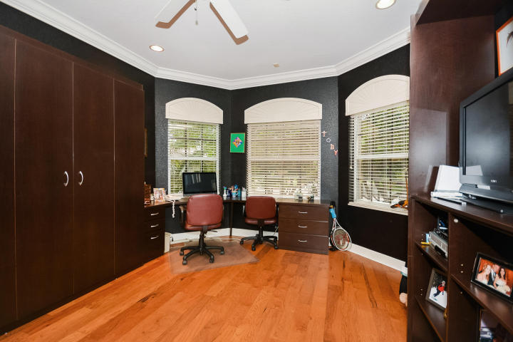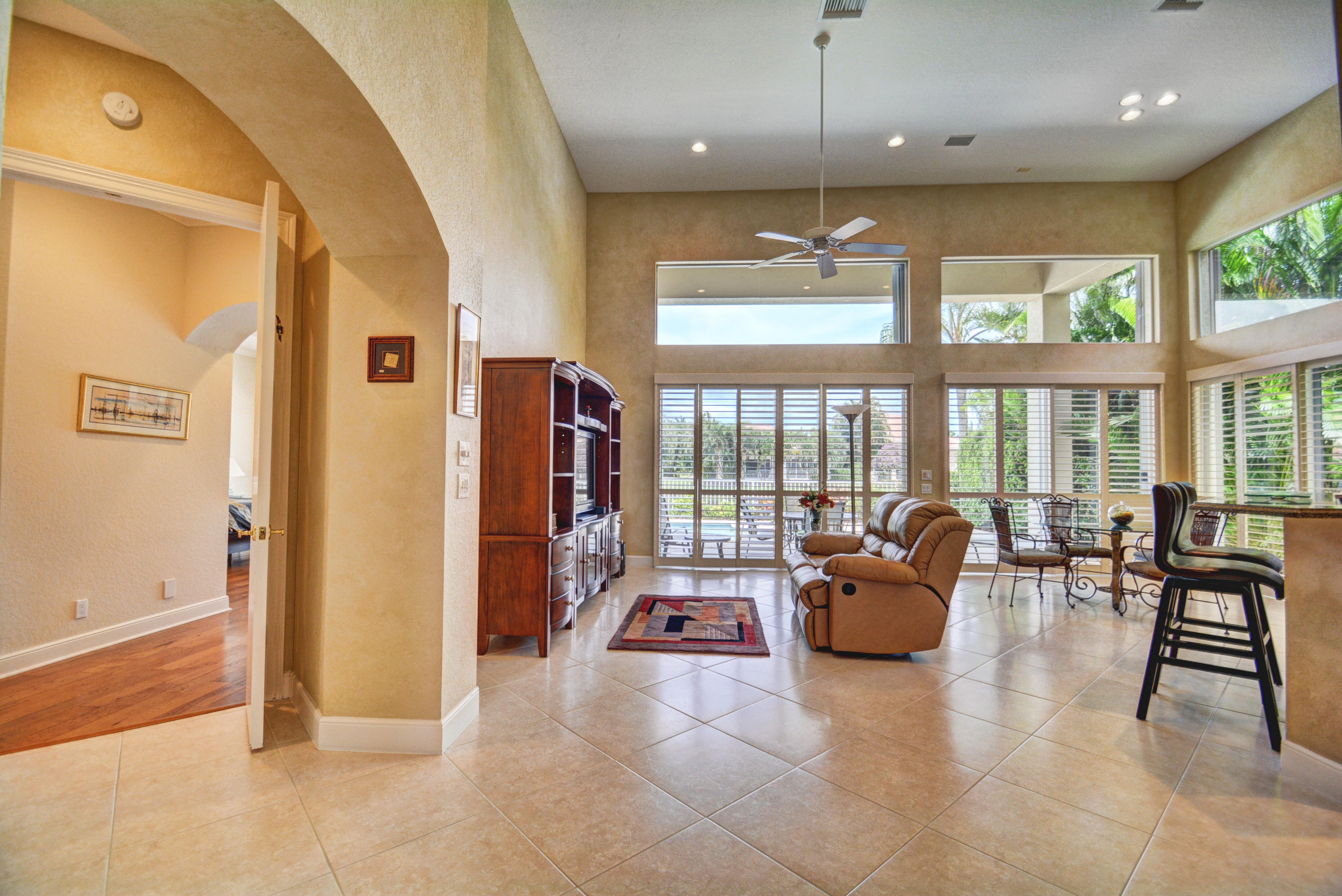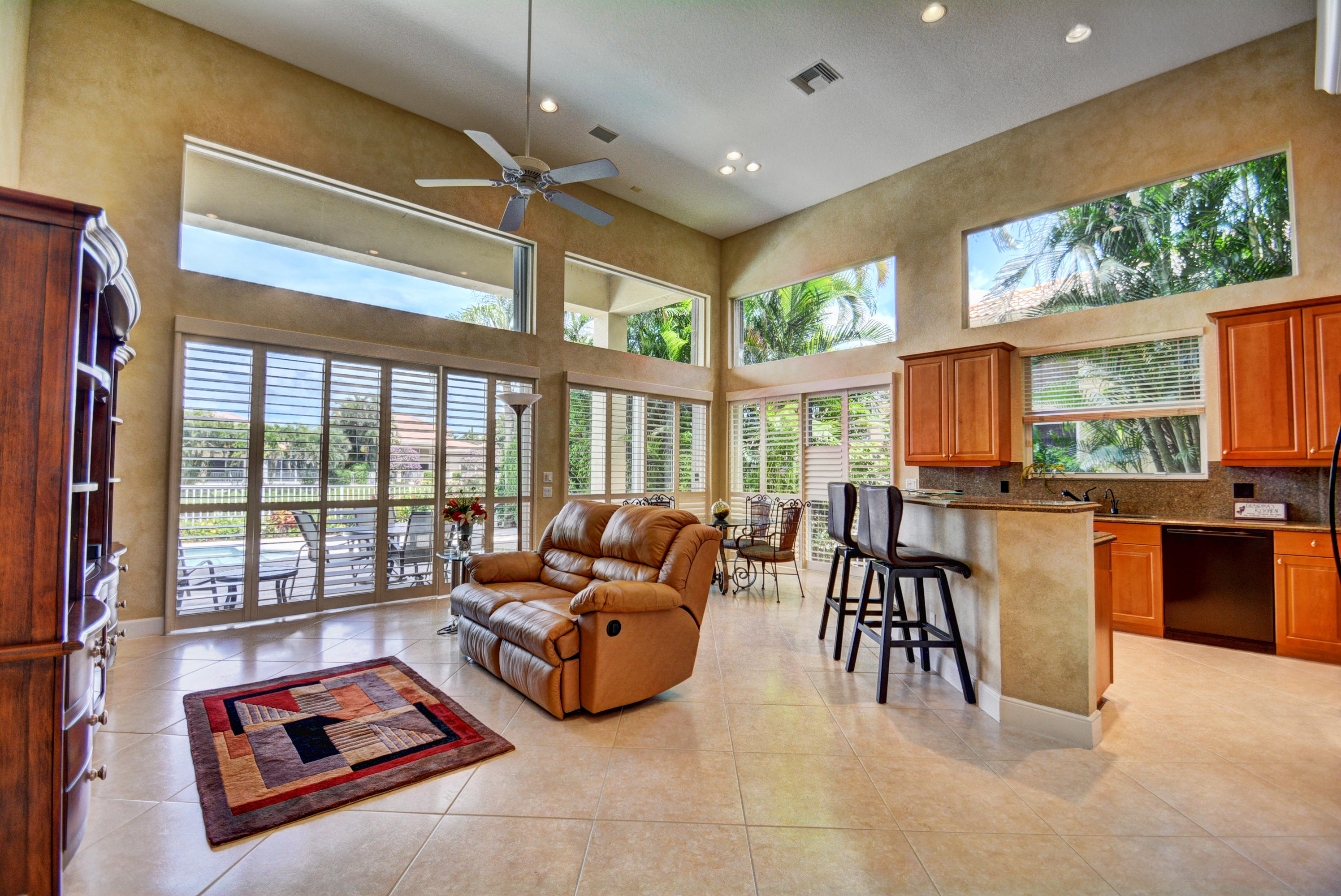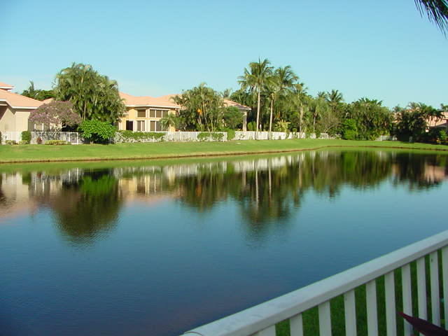 Breathtaking sunrises over the lake fill this charming & immaculate one-story 3 bedroom/3 bath home featuring volume ceilings with crown moldings;neutral tile in the living areas & hardwood floors in the bedrooms;an open kitchen with light cherry 42" cabinets, granite counters & backsplash & a charming breakfast nook; built-in Living Room wet bar;spacious Master suite; marble Master Bath with corian counters; corian counters in the secondary baths;elegant 2-desk office/library in the second bedroom; plantation shutters & custom drapes & blinds;faux-painted walls;custom closet design;extra high-hat lighting; ceiling stereo speakers;central vacuum & water filtration systems;extra cabinetry in the garage; accordion hurricane shutters & a lovely patio with a covered area & a pool on the lake.