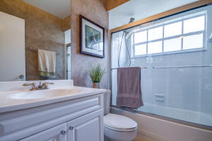 This renovated 3 bedroom, 2 bath, 2 car garage home is fully upgraded and ready for move in! The remodeled kitchen has granite, stainless steel appliances and modern cabinetry. The living and dining spaces both open to a very spacious, fenced and private backyard. Neutral, fresh paint, plantation shutters, an open floor plan and ceramic tile throughout make this home bright, spacious and beautiful. Both bathrooms also boast upgrades with new vanities, granite, and glass shower doors. The spacious master bedroom also opens to the wonderful backyard which has plenty of room for a pool. This home is also near A rated schools and great shopping and has extremely low HOA fees!