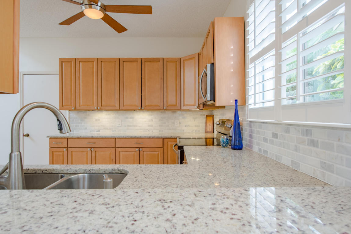 Pristine East Boca renovated home in gated country club with NO MANDATORY MEMBERSHIP!This spacious light-filled 2 bedroom with Loft/ 2.5 bath has an elegant private master suite on the main level with an generous walk in closet. Experience 20 ft plus soaring ceilings in the sun-filled, open living room featuring travertine marble flooring. European style kitchen with rich cabinetry, sleek granite perfect for entertaining family and friends. Through the sliding glass doors, step out onto your own retreat, private patio & fenced lawn to enjoy inviting sunrises and coastal breezes. Open breezy loft with private upstairs bedroom & bath. Huge 2 car garage with storage area. Highly rated schools and close to everything that Boca and Del Rey beach have to offer!!!