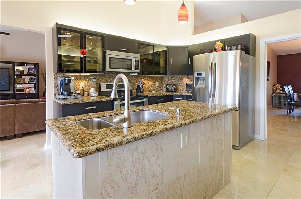THIS HOME HAS IT ALL!! LAKE & POOL!AMAZING open floor plan! Hurricane impact windows & French doors throughout, completely remodeled kitchen with gorgeous dark wood cabinets & stainless steel appliances, polished marble floors, garage storage system & sea led floors, dome screened-in heated salt water pool, tankless water heater! Completely upgraded bathrooms with frameless shower doors, new toilets, marble tops, glass bowl sinks & more!! New light fixtures & fans.. TURNKEY!! Master closet is 10x10.