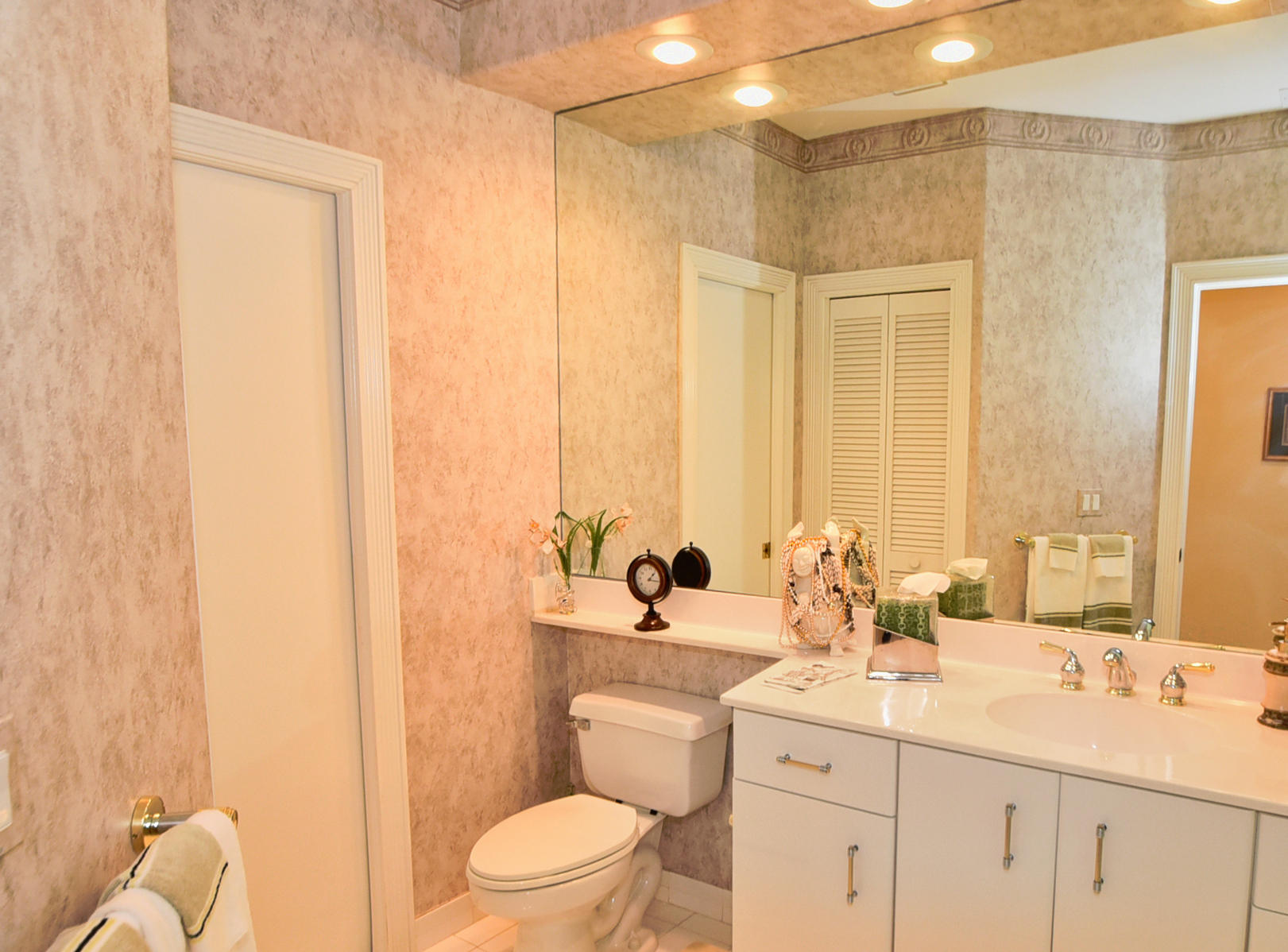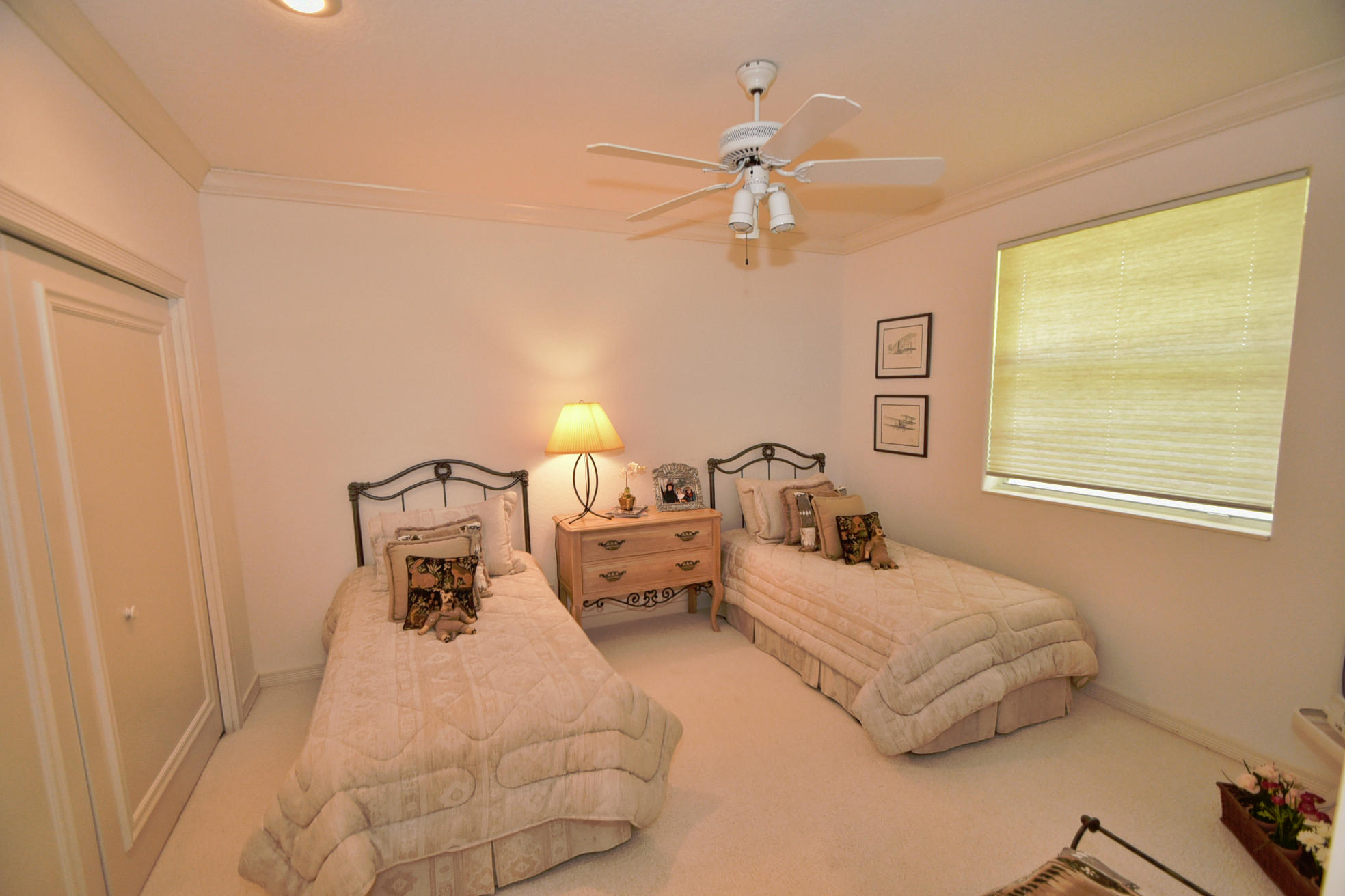 Wonderful, open & very bright 4 bedroom 3 full bath home. The 4th bedroom is a built-in office w/ designer wood cabinetry. Desirable white lacquer cabinets in the kitchen. Neutral tile floors, split bedrooms, custom built-ins, roomy closets, screened patio and a replaced roof. Topped off w/elegant circular driveway. JUST REDUCED! PRICED TO SELL! FURNITURE AVAILABLE.Mandatory membership country club-LIVE THE LIFESTYLE!!