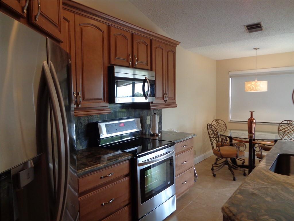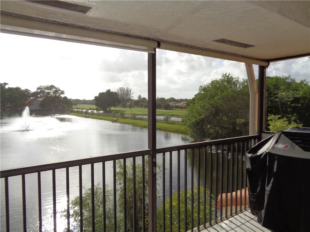 TURN-KEY, UPSTAIRS ENTRY COACH HOME W/LAKE AND GOLF COURSE VIEWS. RENOVATED KITCHEN WITH GRANITE, WOOD CABINETRY. LG BRAND SS APPLIANCES. ESPRESSO LAMINATE FLOORING IN LIVING AREAS. SUMPTUOUS MASTER BEDROOM W/PLUSH, NEUTRAL CARPETING, VAULTED CEILING, PLANTATION SHUTTERS, WALK-IN CLOSET. MASTER BATH W/WALK-IN SHOWER. SPACIOUS 2ND BEDRM. 3RD BEDROOM HAS MURPHY BED AND BUILT-INS FOR HOME OFFICE. SCREENED-IN PATIO W/REMOTE SLIDING GLASS DOOR COVER. WEBER GRILL. HURRICANE SHUTTERS. NEW AC.