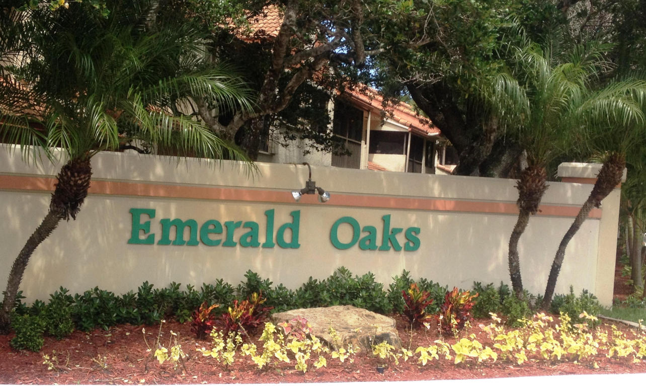 DESIRABLE ALL AGE, PET FRIENDLY, GATED EMERALD OAKS SINGLE STORY TOWNHOUSE/VILLA. NO STAIRS IN THIS ACTUAL 3 BEDROOM, 2 FULL BATH/1 CAR GARAGE CORNER UNIT. PATIO CONVERTED (ALL PERMITTED) TO PLAYROOM & CAN EASILY BE USED AS A TV/MEDIA ROOM, DEN, OR HOME OFFICE. HOME ALSO INCLUDES A LARGE MASTER BEDROOM W/WALK-IN CLOSET & AN EN-SUITE BATHROOM W/DUAL SINKS & SHOWER, EAT-IN KITCHEN W/PANTRY, 2ND FULL BATHROOM W/SHOWER & TUB COMBO, HALL COAT CLOSET (A RARE FIND IN S. FLA), FULL SIZE WASHER & DRYER. HOME IS WELL MAINTAINED & TUCKED BACK IN THE COMMUNITY FOR ADDED PRIVACY. QUIET LOCATION ACROSS FROM LAKE & SHORT WALK TO POOL. ACROSS FROM TY PARK & EASY ACCESS TO I-95. CLOSE TO SHOPPING, MOVIES, DINING & MUCH MORE! ''SQ. FT. OBTAINED FROM COUNTY RECORDS MAY NOT BE ACCURATE''.