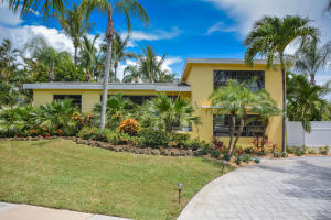 Located in Boca's most sought after neighborhood, Boca Villas, this renovated split level is move-in ready, or the perfect location to build a brand new home. Centrally located, it's a short walk to Mizner Park, Lake Wyman Park, and the 5th Avenue Shops. Spacious corner lot measures nearly 110 x 75, and is surrounded by new construction. Home features three bedrooms in a split configuration, including master with ensuite bathroom, while two additional bedrooms share a renovated bath. Main floor has living, dining and kitchen, with huge bonus room below. Move-in, renovate, rebuild or rent! The Best Value in Boca Villas!!!