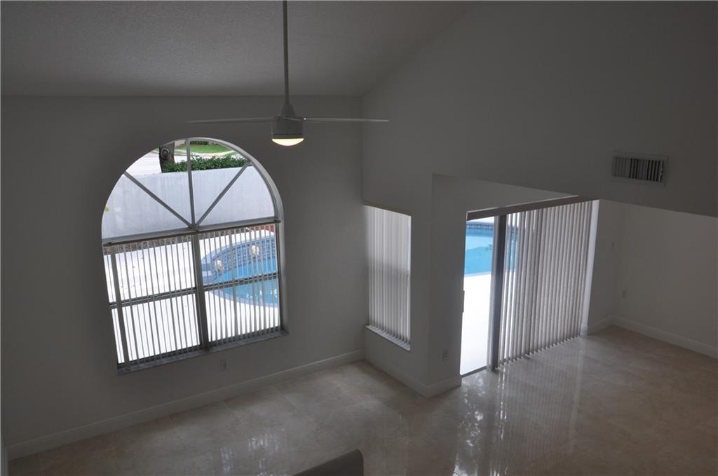 Two story cement house, 4 Bedrooms upstairs, Master Bedroom with master bathroom, walk-in closet, two living rooms, one dinning room. New Ceiling fans in all rooms, New lighting features in all rooms. Remodeled Kitchen with Spanish porcelana. Laundry roo m. TWO car Garage with reinforced garage door. New appliances Stainless Steel doors ( 3 doors Refrig, Dishwasher, Stove with flat panel heat surface.