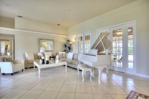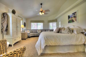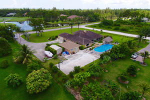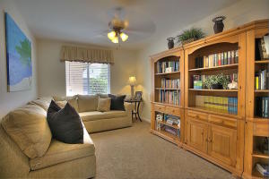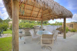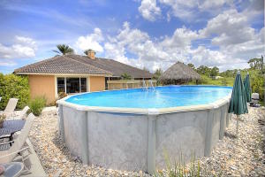 A gorgeous golf course view without the dues! This amazing estate features a 3 bd/2ba+ den primary home plus a separate studio guest house with full cabana bath, walk-in storage closet and efficiency kitchen. When you walk into the luxurious-feeling home, the slate stone fireplace is a stunning central design feature! Notice the flood of natural light from large windows and French doors which lead to an oversized screened patio overlooking a backyard designed for entertaining with mature fruit trees, tiki hut, summer kitchen (neg.), pool, and basketball court. Master bedroom has his & her closets, sitting area and large master bath with Jacuzzi tub. Sound system/intercom, central vacuum, new water softener, fully fenced DRY lot, paved road, and more make this a gem that won't last long!