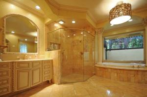 Spectacular private gated five bedroom lakefront estate on one acre of prime real estate in Boca Raton. Marble floors cover this opulent and spacious floor plan perfect for entertaining large numbers of guests. This grand estate home features an amazing gourmet kitchen rivaling those of houses many times the size with built in banquet in the breakfast area capable of seating twelve. This spacious kitchen is equipped with custom wood cabinetry, marble countertops, oversized cooks island and top of the line Wolf and Miele appliances. Butlers pantry with bar is within the oversized kitchen complex. Formal living room and family room feature a two-sided intricate estate stone fireplace. Custom crown molding throughout.