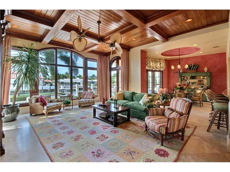 112' of deep water frontage! Exquisitely decorated with impeccable craftsmanship and magnificent details, this beautiful estate exemplifies design artistry. From the intricately hand painted ceilings to the gorgeous custom wall coverings, this home offers every luxury amenity imaginable. Custom features include a huge chef's kitchen, soaring ceilings, elevator, beautiful media room, home office overlooking the water and stunning pool/patio with river rock stream. Private Beach Club Membership available.