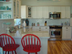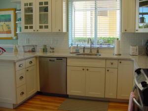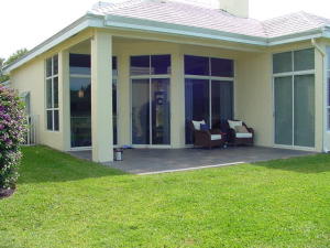 Enjoy the lake & golf course views with plenty of sunshine the moment you enter the front door of this charming ''Cape Cod''-style home which offers 2 bedrooms plus an office & 2 baths -- completely remodeled throughout featuring volume ceilings; engineered wood flooring & neutral carpet; a light & bright kitchen with white 42'' shaker-style kitchen cabinets, marble counters, white subway tile backsplash, stainless steel appliances & a quaint breakfast nook; a remodeled secondary bath in white cabinetry & marble; plantation shutters & wood blinds; custom closet design; newer washer & dryer; freshly painted walls; the roof & air conditioning systems replaced in 2010 & an inviting back yard with a covered patio with slate tile flooring & fenced grassy area overlooking the lake & golf course.