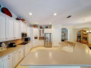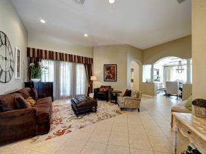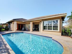 Immaculate, well maintained 4 bedroom, 3 bath home with 3 car garage. Living areas have beautiful ceramic tile laid on the diagonal, bedrooms have wood laminate. Spacious kitchen has brand new appliances and huge wrap around snack bar plus eat-in area. All bedrooms feature closet built-ins, master bath has Jacuzzi tub and large walk in shower. Brick pavered patio leads to the beautiful salt water pool. Other features include built in outdoor grill, accordion hurricane shutters, surround sound, paddle fans and lush landscaping. NOTE: the following items do not convey: chandelier in master bedroom and light fixture in dining room.
