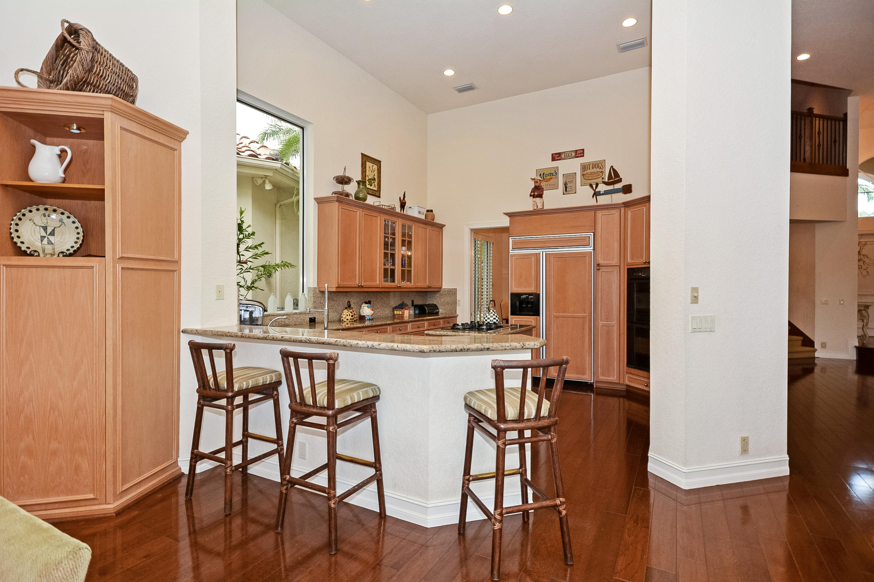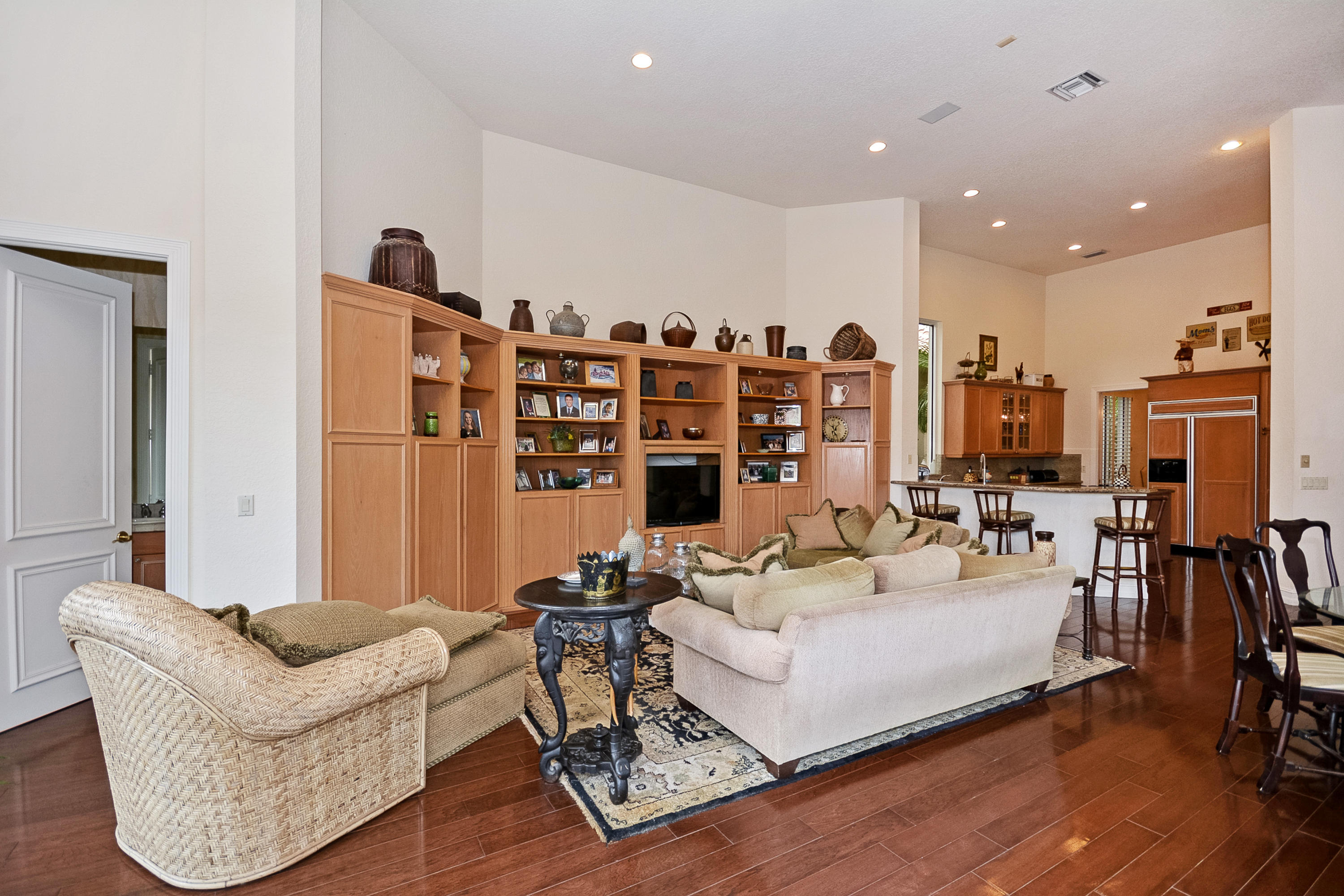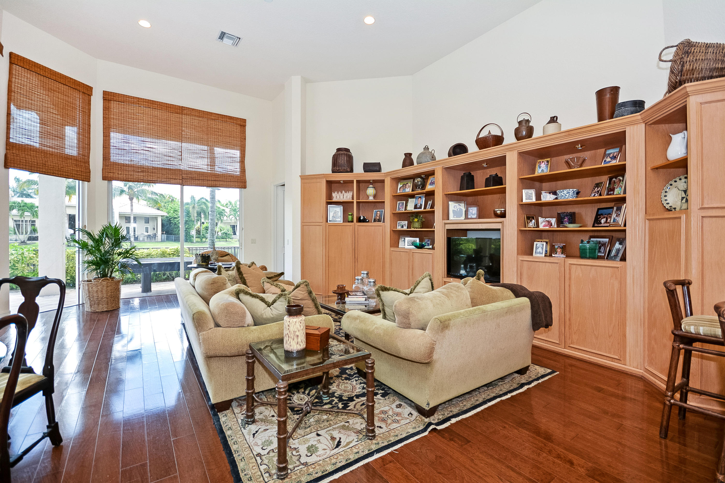 $5000 Bonus to Buyer Towards Initiation Fee. Stunning Lake Views! Custom two story 5 bedroom plus custom built in office, 5.2 bath estate with 2.5 car garage. Light & bright home with floor to ceiling windows throughout, beautiful engineered floors on main level, custom built-in in the family room, built-in buffet in the dining room, and volume ceilings. First floor master bedroom features a replaced carpet, separate sitting room, and two walk-in closets. Relax in the freeform pool or under the covered patio area with built in grill that overlook the lake.