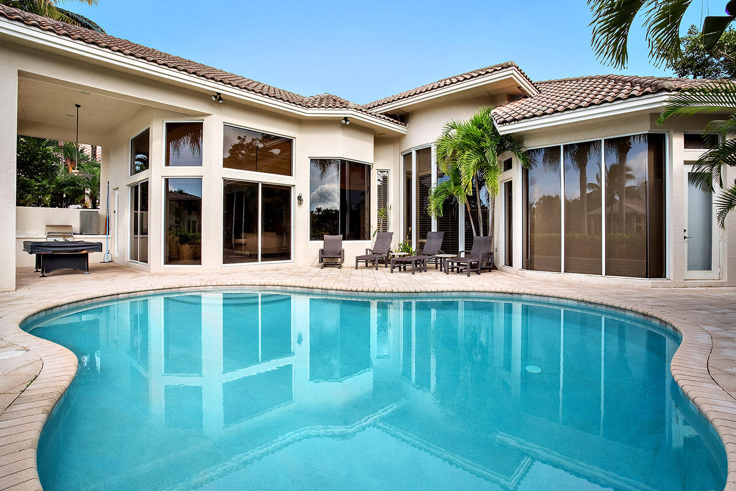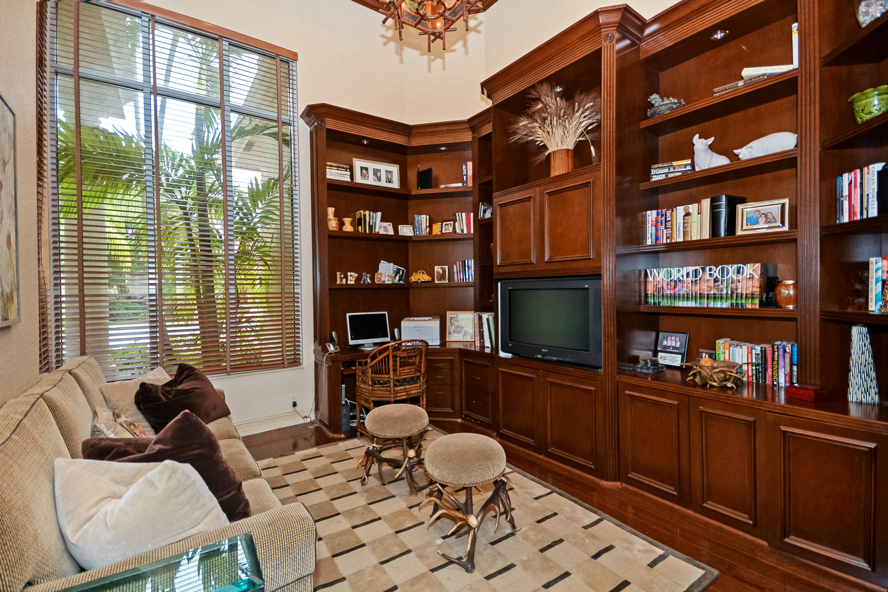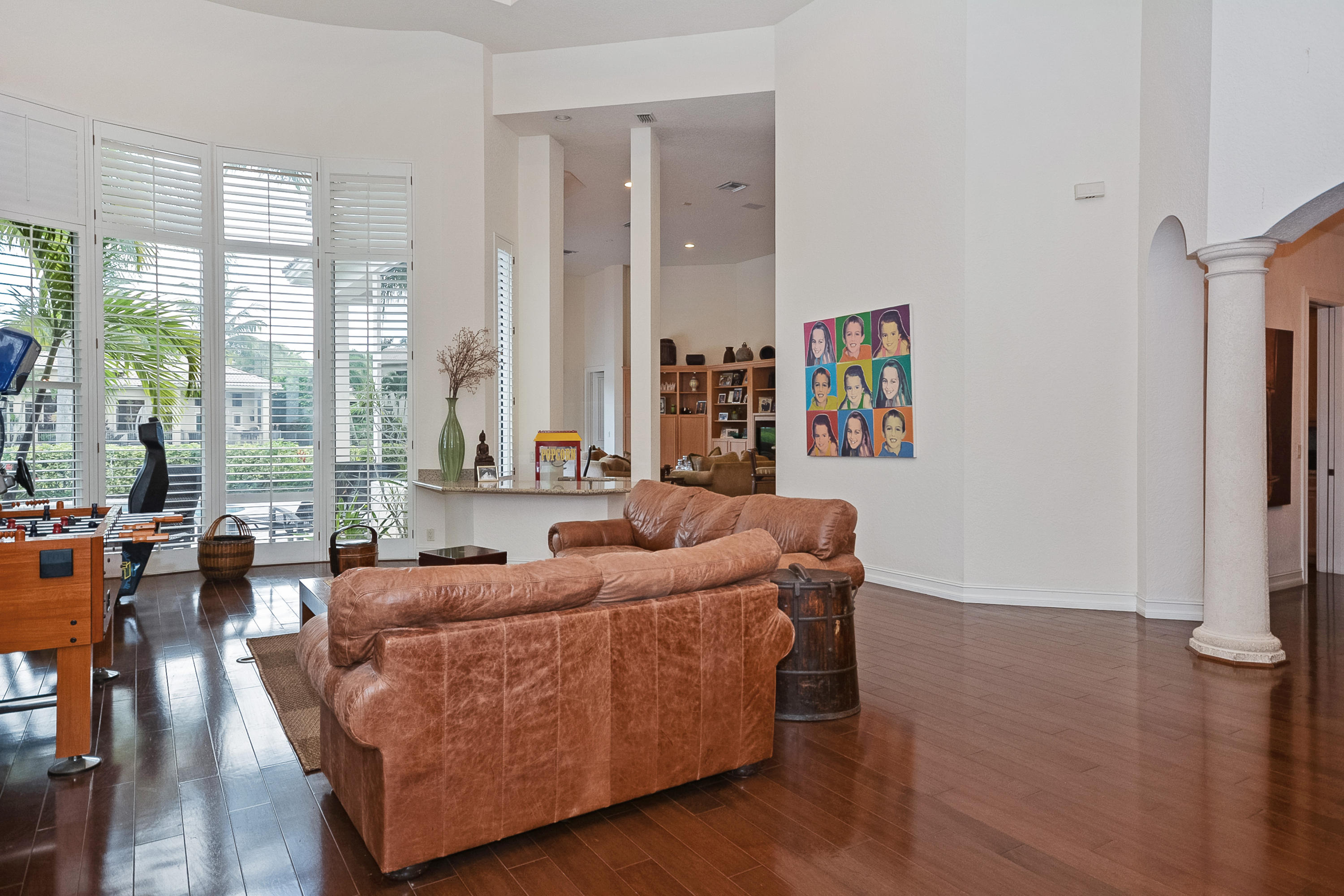 $5000 Bonus to Buyer Towards Initiation Fee. Stunning Lake Views! Custom two story 5 bedroom plus custom built in office, 5.2 bath estate with 2.5 car garage. Light & bright home with floor to ceiling windows throughout, beautiful engineered floors on main level, custom built-in in the family room, built-in buffet in the dining room, and volume ceilings. First floor master bedroom features a replaced carpet, separate sitting room, and two walk-in closets. Relax in the freeform pool or under the covered patio area with built in grill that overlook the lake.
