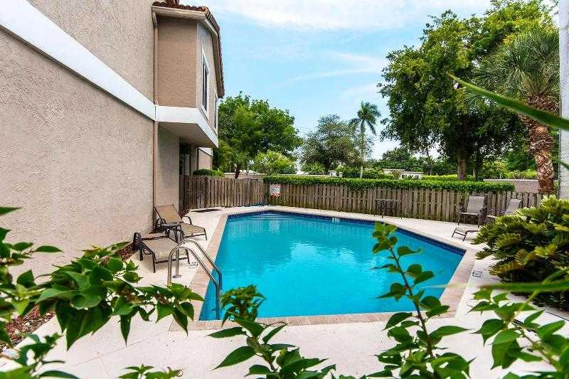 This outstanding corner Townhome is an ideally located builder's model which offers 2 bedrooms/2.5 baths, remodeled eat in kitchen/cherry wood cabinets/Corian countertops, Wall of Impact windows/doors in the Living Room overlook a beautiful lushly landsca ped patio for relaxing/entertaining on near fenced pool, Oversized Master Bedroom, Guest bedroom and baths, washer/dryer, 2 small pets under 20 lbs, Located near Bayview School, Galleria Mall and 10-15 minutes away from Fort Lauderdale Beach and airport.