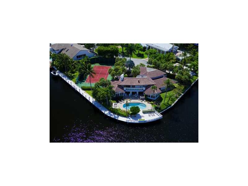 Yachtsman's paradise! Trophy point lot estate with 355ft on the water; 203' of straight frontage deepwater protected dock for mega yachts! Endless direct intracoastal views! Sits on two lots and the land totals an impressive 28,135 sqft, includes a tennis court. This meticulously maintained 5 bedroom home has a formal living, dining, game room, maid's quarters, fireplace and a private master suite. All rooms have stunning water views. Perfect for entertaining -- heated pool overlooking the intracoastal.