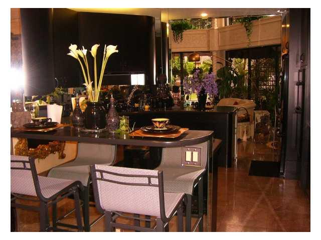 Completely renovated home with 20' ceilings and clerstory windows overlooking a private pool and gardens.Gated Community. Award winning designers have put their finishing touches in every corner. Top of the Line Appliances, plumbing, built-ins by LA STRA DA & more. Desirable floor plan. Master Bedroom and huge Master bath on ground floor. Pool has its own bath. Designer Wrought Iron stairs lead to 4 additional bedrooms, 1 currently used as Den.Easy to show quick closing. Short sale approved AS/IS