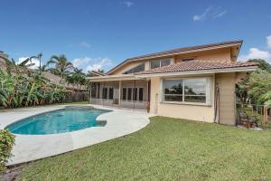 Stunning lakefront home in Boca Sailing and Racquet Club! Boasting 5 BR, 3 1/2 BA, 3 car garage & gorgeous pool, spa & lake view. Floor plan is ideal with generous rooms & 1st floor master suite with double sink vanity, two walk-in closets, separate shower, whirlpool tub & bidet. The granite countered kitchen has stainless steel appliances, private breakfast room & overlooks family room, lake, screen porch & pool. The second floor includes an ensuite with private bath & two other bedrooms with a Jack N Jill bath. A newer roof & accordian shutters are a plus! Lush tropical landscaping includes many exotic fruit trees. Community has Clubhouse, two tennis courts, boat ramp to 45 acre lake & a nature trail. Home is close to Mizner Park, beaches, shopping and all major highways. Come visit toda