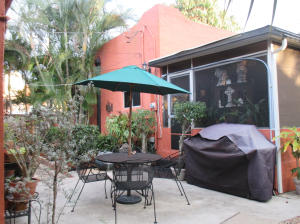 first buyer did not close Seller wants quick inspection/closing. Charming Spanish 2/1 home w/1br/1ba cottage. Lot is 1.5 lots wide-Front door entry to loggia/den Features include hardwood floors,travertine in loggia,kitchen & bath, fireplace,granite counter tops, & s/s appliances.Upgraded bath w/ jacuzzi tub/shower, newer vanity & toilet. Both B/R have French doors to decks.Two impact windows. Large screened porch w/ impact French doors into kitchen. Electric & plumbing updated. Drapes & 3 chandeliers (l/r,d/r & kitchen) excluded. Laundry room attached to cottage. Cottage has travertine floors,5 yr central a/c, new hot water tank, own electric. Rented for $800 mo to mo BUYER MUST be prequalified by Everbank before offer can be submitted. Info deemed reliable but not guaranteed