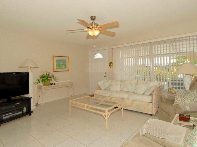 Immaculate home with free golf for owners NO LAND LEASE Tiled Newer kitchen appliances-stove, dishwasher, sink. Newer furniture stays with house. Beautiful, large patio for entertaining. Newer air conditioner Pets welcome. Senior community with two clubho uses and heated pools, community bus. Close to shopping, I95 and beach. Newer garage door. Extra refrigerator stays.