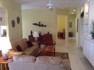 This popular ''Glenwood'' model is in a pristine condition! Tiled floors throughout, built-in entertainment center in great room, large screened patio overlooking the lake with an easterly exposure, Plantation shutters, corian counter is kitchen, 10 ft. ceilings throughout. RiverWalk offers luxury resort-style living, without extravagant ''country club'' fees! Play a set of tennis, meet friends for a light lunch, enjoy 12 miles of scenic pedestrian pathways, take a quick swim or enjoy a vigorous work out in the fitness center and swim laps-all for the exclusive use of RiverWalk residents! The heart of this unique residential community is its Town Center. In addition to its three heated pools and a fitness center, the tennis pavilion features eight lighted Har-Tru tennis courts.