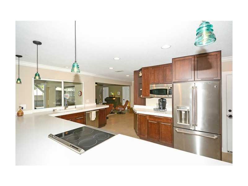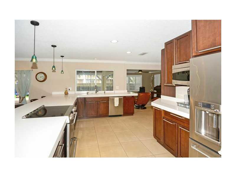 Completely remodeled, this lovely home is a dream come true for a buyer! Located on a large cul-de-sac, this home is convenient to shopping, schools and parks. Roof 2004, impact windows with plantation shutters, new water heater, bathrooms, kitchen, and p atio. Landscaping surrounds the spacious yard and pool area incldg a dog run, shed and children's playset. Stainless steel appliances, large cooking island/breakfast bar have been opened up for a great room effect. Newly painted...don't miss out!