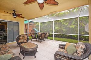 Extremely well maintained home in the Sonata section of Mission Bay. This home features 3 bedrooms & 2 full baths, volume ceilings & crown molding throughout. Kitchen has been updated with custom wood cabinetry, granite counter tops and backsplash,& stainless steel appliances. Large living room with an abundance of natural light fill the large living room. Luxurious master suite w/ custom cabinetry, dual sinks w/ granite counters, seamless shower and mosaic tile. Covered screened tiled patio w/ two fans make for a wonderful outdoor living space. Hurricane shutters make this well maintained home with beautiful curb appeal a must see!