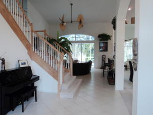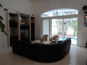 Beautifully Updated 4 Bed / 3 Bath with open loft (could be 5th bed room) with lake views, heated pool & jacuzzi. Nice size Corner lot. New roof in 2012 and house painted outside 2012, New Kitchen in 2005 with cherry wood cabinets, stainless steel appliances, granite counter tops and wet bar with wine cooler and ice machine. Upstairs A/C replaced 2012 and downstairs A/C replaced in 2005, New Screen enclosure 2007, new washer/dryer & pool heater in 2015. 4th bed rm set up as office with built in desk and shelf unit. Built in wall unit in family room with TV, receiver, surround sound and JBL speakers. Built in wall unit in master bed room. Separate laundry room with sink. Very well maintained home. Monthly maintenance covers manned gate, lawn care, sprinklers, pool, tennis and play ground