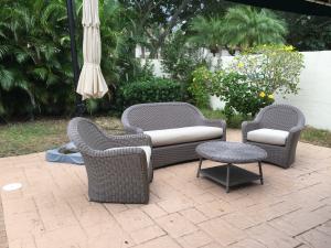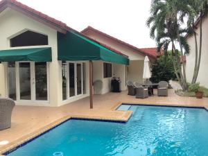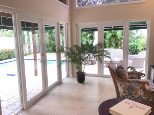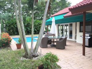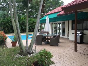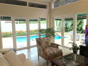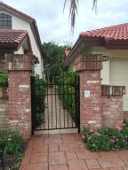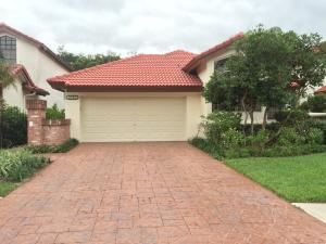 Charming two bedroom plus den/office. Tile floors throughout. NEW KITCHEN! NEW ELECTRICAL PANEL. 2 large master suites. Tropical courtyard entry & atrium bring tons of natural light into this home. Knockdown textured ceilings. Plantation shutters and recently replaced French doors to atrium and pool off living room. PRIVATE POOL HAS BEEN RESURFACED, Roof replaced in 2014. No storm shutters. Lake views from the front of the house. 24 hour manned gate. Community pool & spa and tennis club across the street. Quarterly HOA dues of $1,225.00- includes 24 hour security, basic cable, front yard maintenance, clubhouse, and community pool. Best Town Center location! Walk to Greenwise Publix, shops, restaurants & more. Close to beaches, I95, Turnpike & universities.