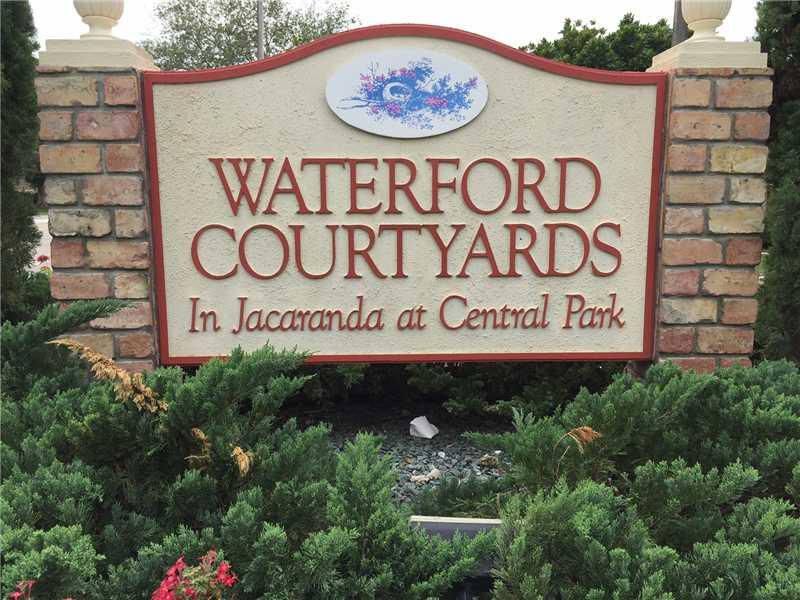 Nice WATERFORD COURTYARDS/Central Park location. Convenient floorplan w/all rooms w/window is floor-to ceiling to your own private patio. Townhomes spacious, large master bedrooms, plenty of closets space, master and 2nd bedrooms with balcony for a bright er rooms, great pool area, full size W/D,central vac.Bike 2 Central Park for tennis+kids activities.Amazing association maintains property in pristine condition. 24h Notice required. Normal Sale! Close to shopping Mall & Publix and highways