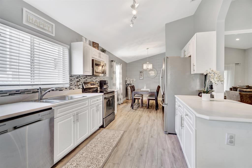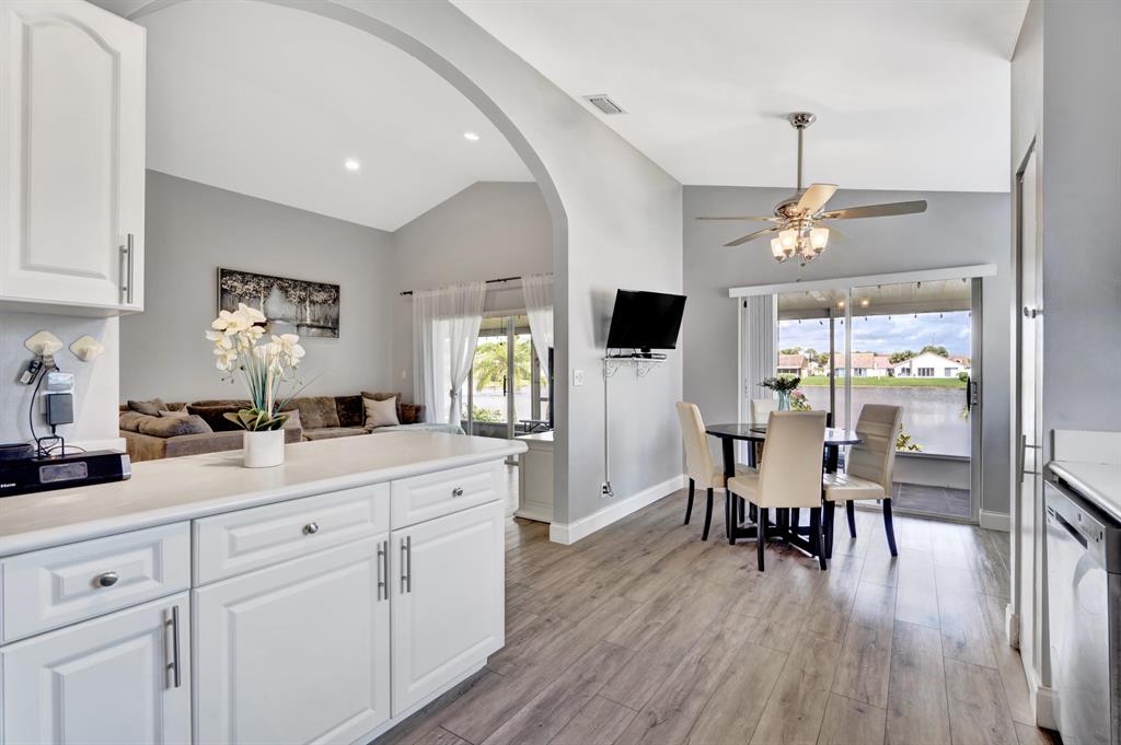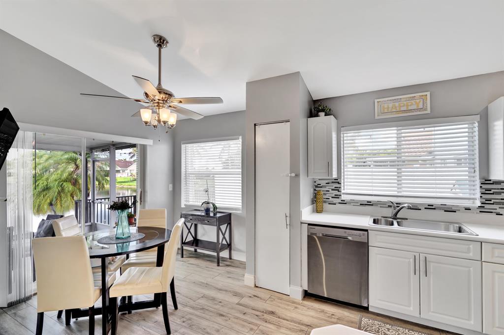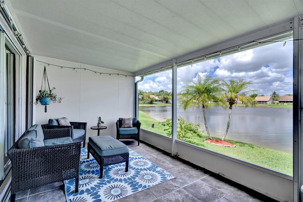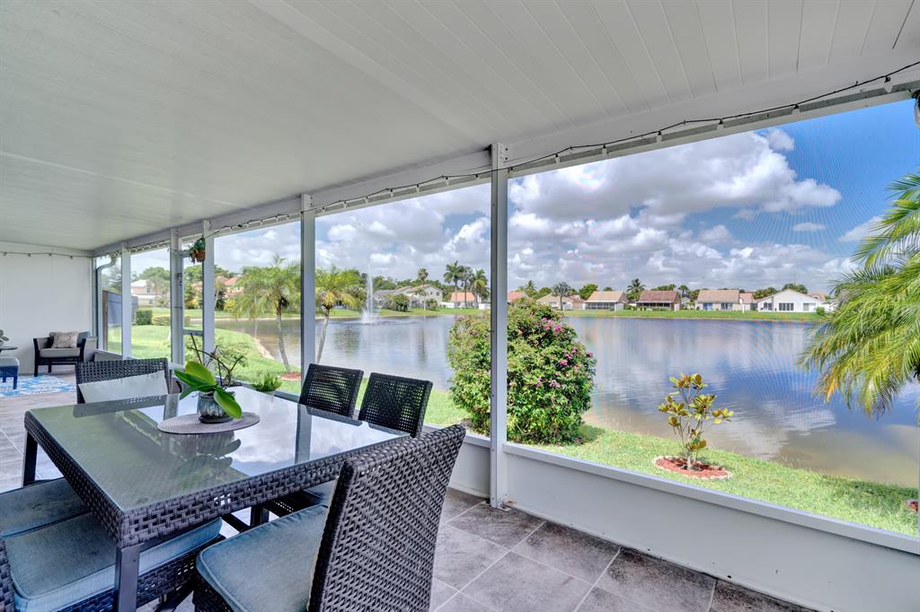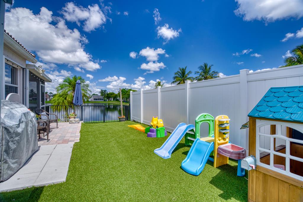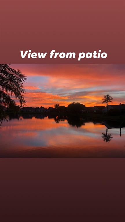 Spectacular lake front home that has been renovated and is move in ready. You will fall in love with the open concept layout featuring vaulted ceilings and split bedrooms floorpan. Large covered screened in patio offering stunning sunset views from every room across the back of the house. Modern updated bathrooms, waterproof & scratch resisted vinyl flooring throughout, beautiful white kitchen with newer appliances. Custom built in closets,Recessed lighting, accordion shutters, artificial turf making the yard ideal for children and pets! Huge bonus 4th bedroom originally garage converted by the builder with plenty of storage area. Newer AC, water heater & roof.Conveniently located next to the community pool & playground. CALL LA AGENT FOR APPOINTMENT. NO SHOWINGS UNTIL FRIDAY BY APPT ONLY