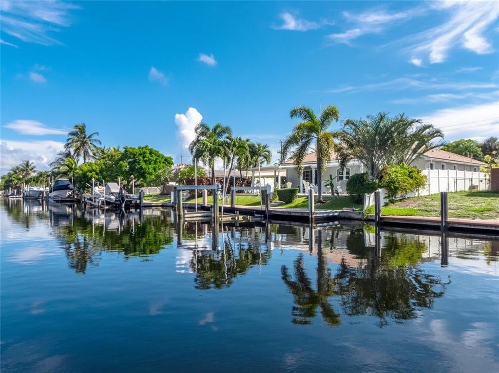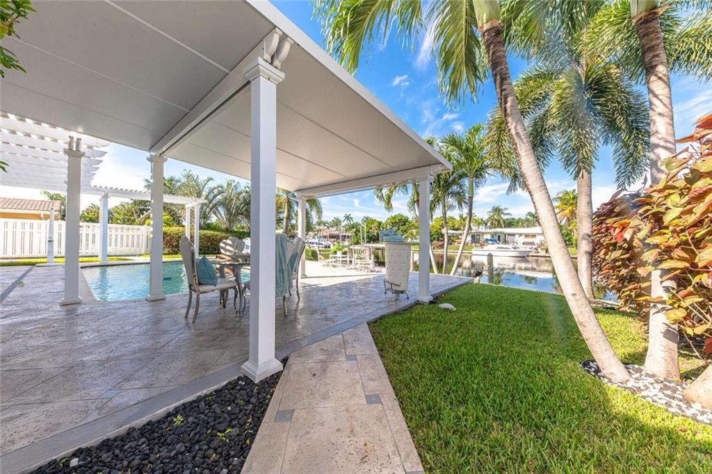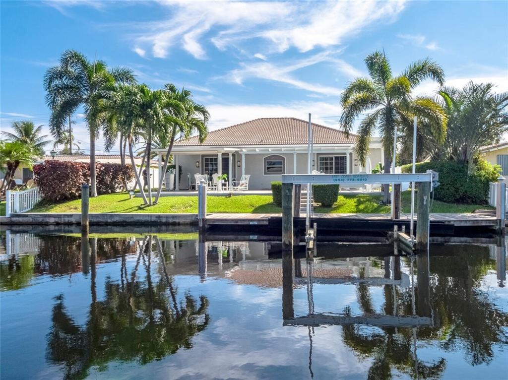 Beautiful 2008 constructed home with high ceilings, incredible open floor plan with 70 ft on the waterfront, new dock & 12k boat lift! Great curb appeal and grand entryway. All bedrooms are suite style with full baths. The kitchen offers solid white wood cabinets, stainless appliances, new backsplash with breakfast bar. The master suite has a sitting area and sliders to the pool. Master bath has a jacuzzi tub and shower combo. All rooms are a great size and have a nice flow. All impact windows and doors throughout. The backyard has a large pool with muti-color lighting, incredible sunsets, covered patio & pergola's. The home can be sold turnkey furnished. Decorated professionally by Boca Lavish. The home is bordering the incredible Pompano Beach CRA! Located on a wide private canal!